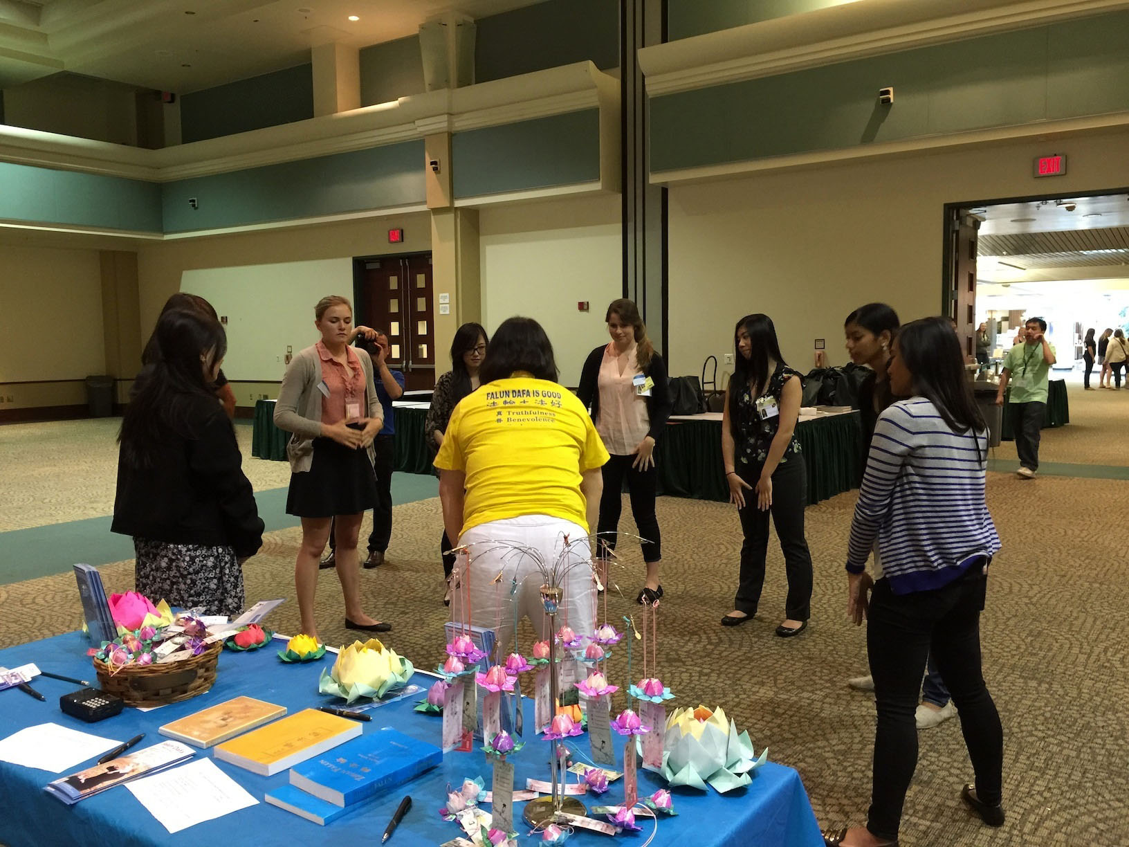 虽有不少人初次听到法轮功,但表示这就是自己一直想找的,有人当场就要买书。现场学功的人不断,很多人认真地记下了炼功点信息,认真地问着问题,对大法弟子赠与的小莲花爱不释手,对系在莲花上的小书签上的“真善忍”三个字非常认同。