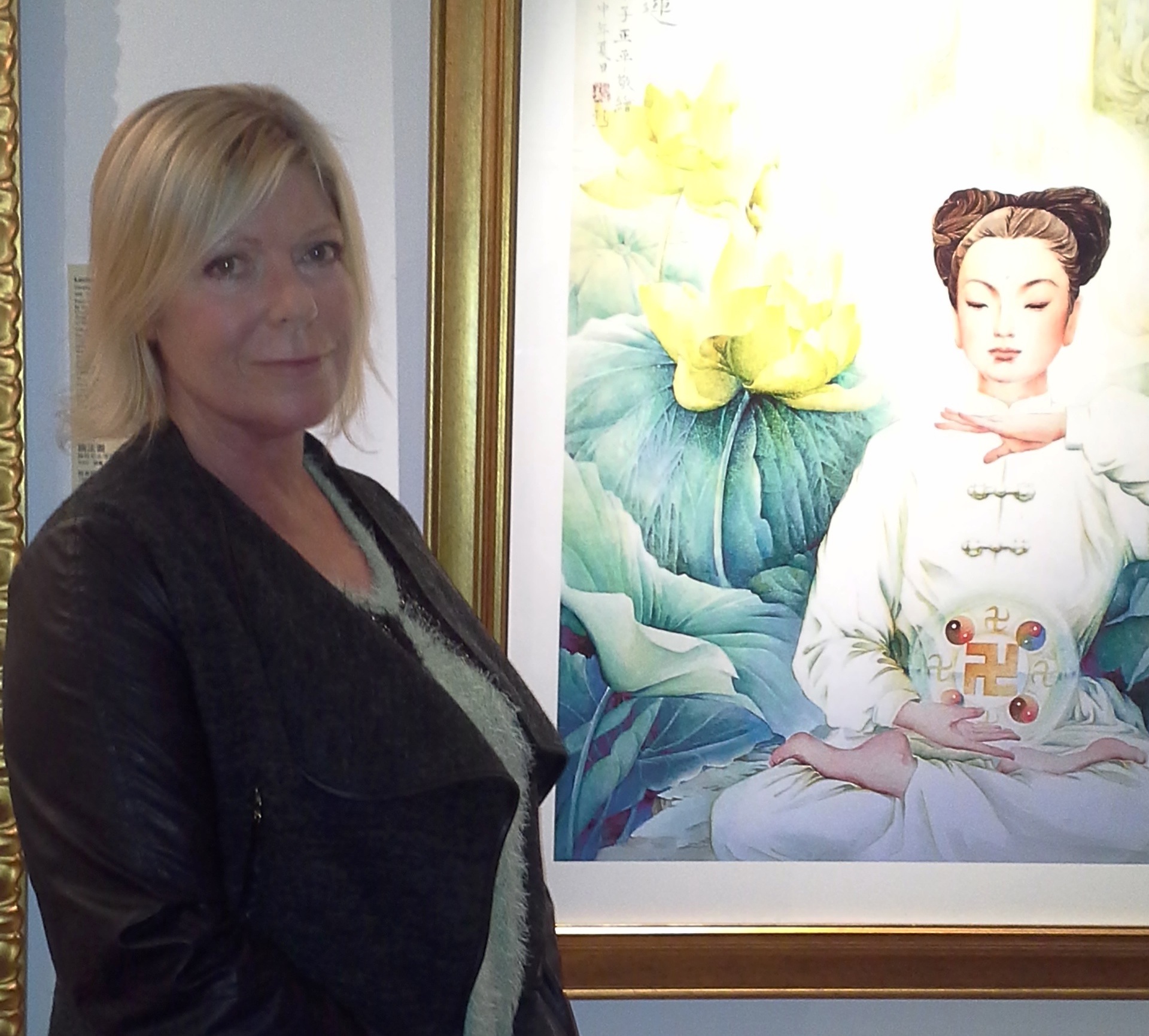 她表示,她认为中共迫害法轮功是错误的,而且不仅仅是法轮功,中共在中国禁止的很多其他宗教信仰也是错的。她说:“我们认为人应该有自由并受到尊重。我今天很愉快参加今天的画展。法轮大法的修炼原则‘真善忍’是普世的价值,并且不会和任何一种宗教信仰发生冲突,‘真善忍’是一种非常美好的理念,想象一下,如果我们的学校中教授‘真善忍’、如果‘真善忍’得以到处传播,这个世界会多么美好?我们的世界确实需要‘真善忍’。”