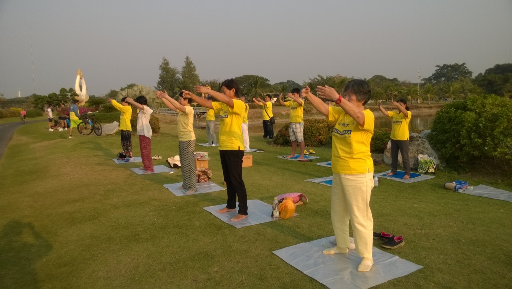 ![]() 法轮功学员在Korat市水上花园炼功洪法 |