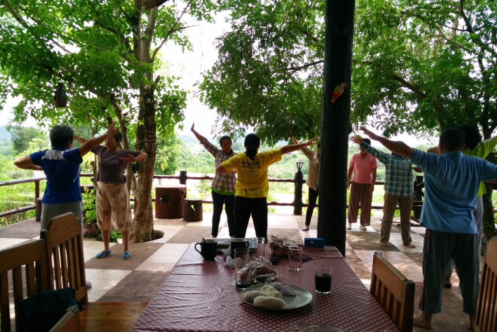 ![]() 法轮功学员在呵叻府北冲县(Pak Chong)度假村教功 |