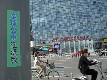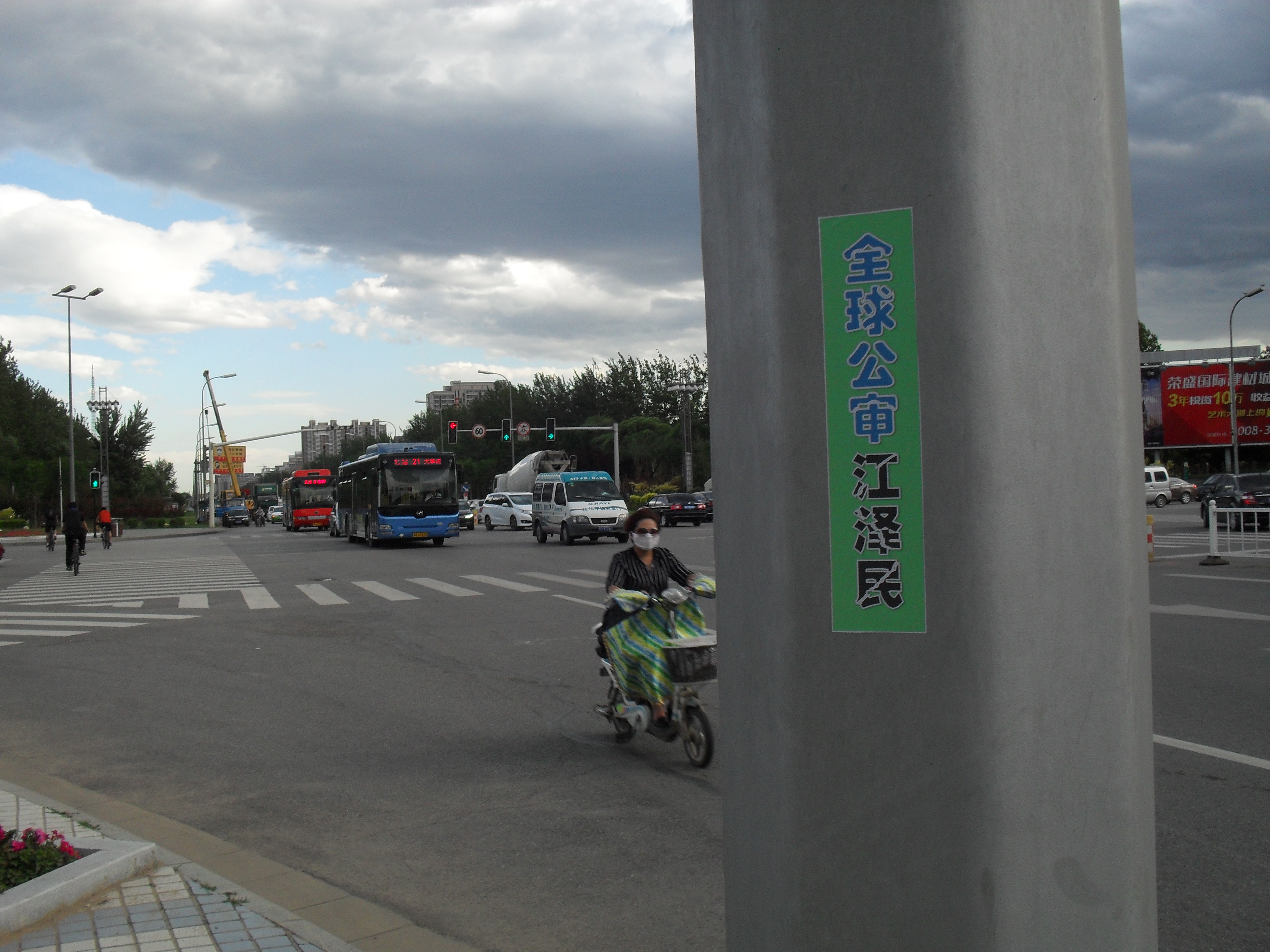 六月盛夏,在河北廊坊大街小巷、公园广场、十字路口都可看到“全球公审江泽民”、“法轮大法好”等真相标语,这是法轮功学员张贴的标语,把真相带给当地的民众。