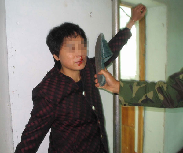 “二零零四年六月十七日,我被送往黑嘴子劳教所。当时我绝食绝水一个月,身体虚弱,加上抽筋,昏了过去,是被从车上抬到劳教所医务室放到地上的。恶警张宏说:她是装的,并狠狠打了我两耳光。然后叫人把我拖到了七大队。鞋和裤子、内裤都拖的漏洞了,肉也磨破了。七大队大队长侯志红叫我站起来,我站不起来,侯志红就拿电棍电击我的全身。嘴里还说:我就能治你们这些人,对你们法轮功有口气就收,顿时我被电棍电的两臂肿起一层泡(穿的是半袖衫)。”