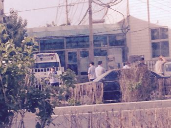 王淑艳和刘香阁两家家属起大早赶到法院,发现五点之前,法院门前道路就已全封闭了,两辆警车横在法院门口,众多像私家车的便衣车占据着路旁,门口除了着警服的警察外,到处都是便衣,他们上身着各色西服,下穿警裤,拿着小铲子,在铲道路两旁贴在电线杆和建筑物上揭露宽城区法院非法开庭的真相传单。