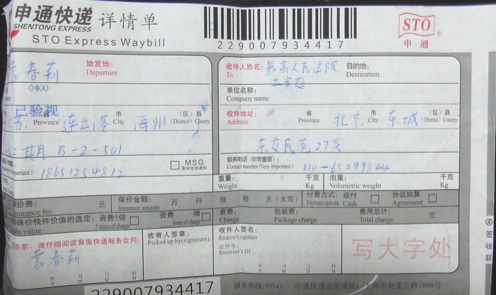四、二零一二年九月二十六日上午,我因发真相资料,被新海派出所绑架,当时审了一夜,被拘留十五天,家里八十八岁的老人无人照顾,两个上学的孩子无人照顾。