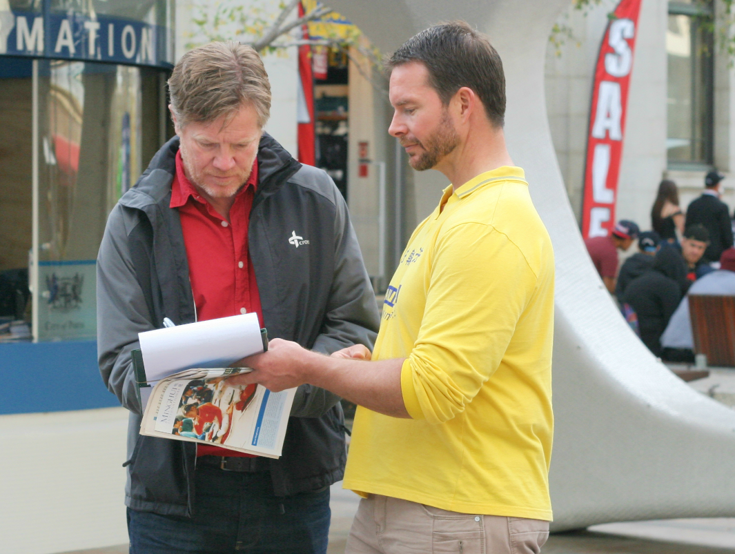 图1-5:六月二十日,珀斯部分法轮功学员在市中心讲真相活动,并征集签名支持反迫害,反对活摘器官