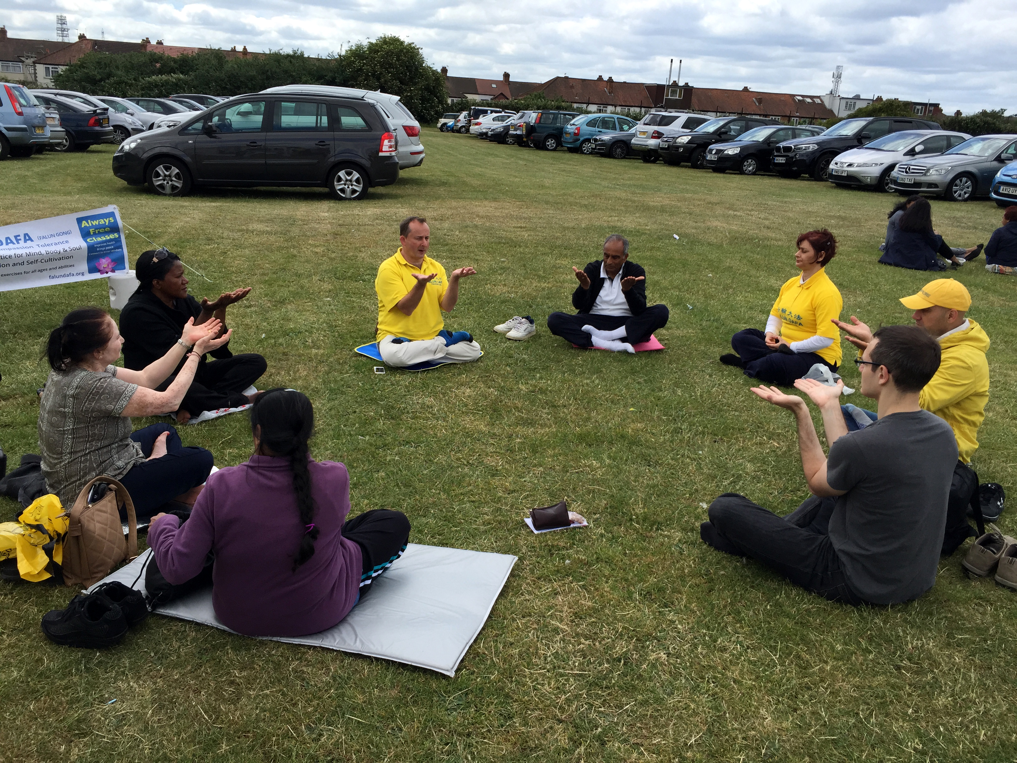 活动从早上九点开始到下午四点结束。整个活动过程中,来学功的人一拨又一拨,很多人表示回去后一定找到当地的炼功点,继续学炼。