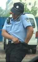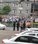 在十八日,警察就已经把附近做买卖的小摊赶走,散布污蔑法轮功的谎言,毒害民众。最令人可笑的是,还居然准备灭火器,调来计生委的救护车,胡说什么防止出现自焚。