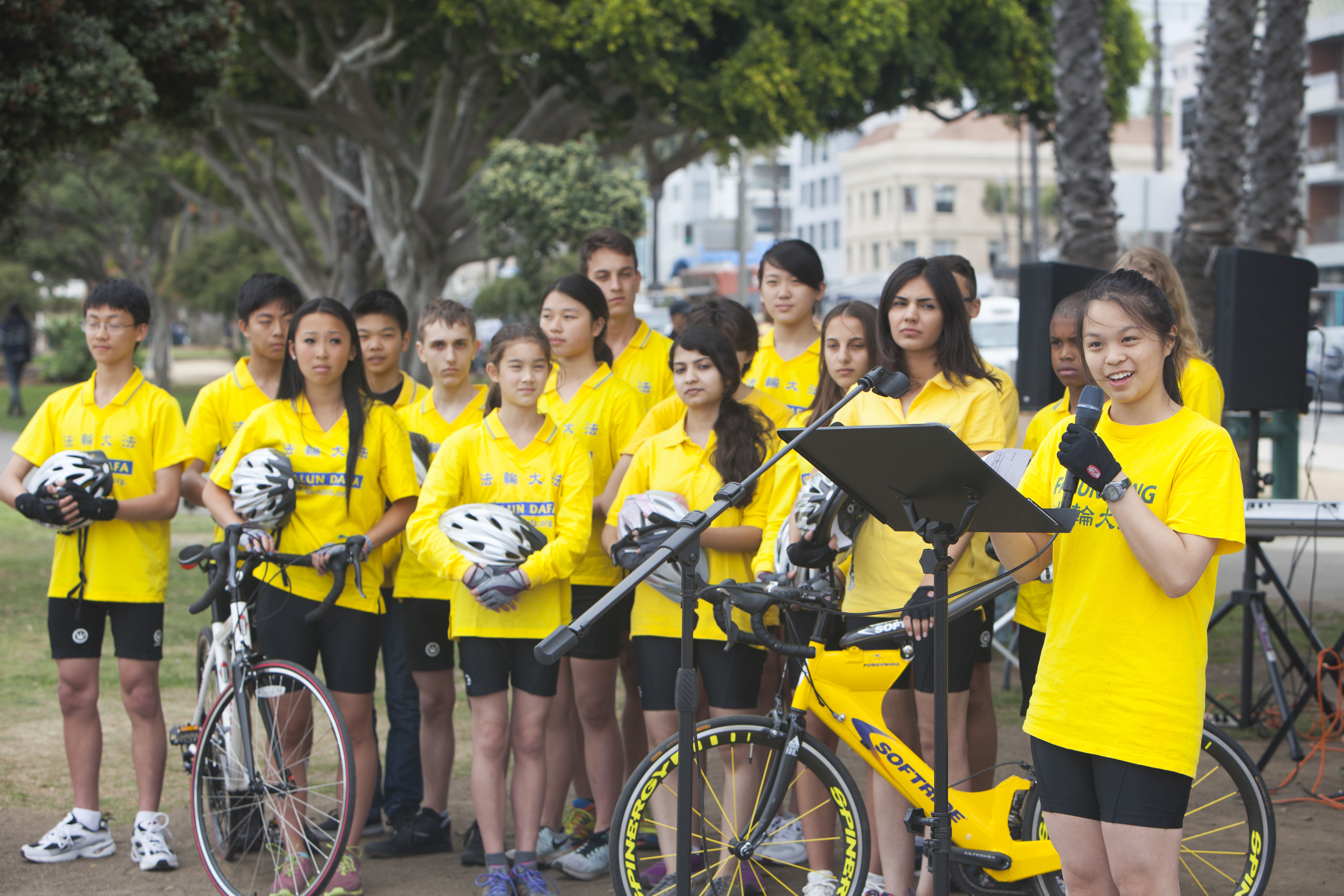 【明慧网二零一五年六月三日】一个旨在营救法轮功学员遗孤的横穿美国单车之旅“骑向自由”(Ride to Freedom) 定于二零一五年六月一日展开。参加者是来自中国、美国、德国、法国、澳大利亚、印度、南美、俄罗斯、阿根廷、伊朗、阿联酋、匈牙利、新加坡等国的青少年。五月三十一日,部分骑手汇聚在洛杉矶旅游胜地圣莫尼卡码头,表达他们的心声:通过骑单车呼吁全世界关注中共对法轮功的迫害