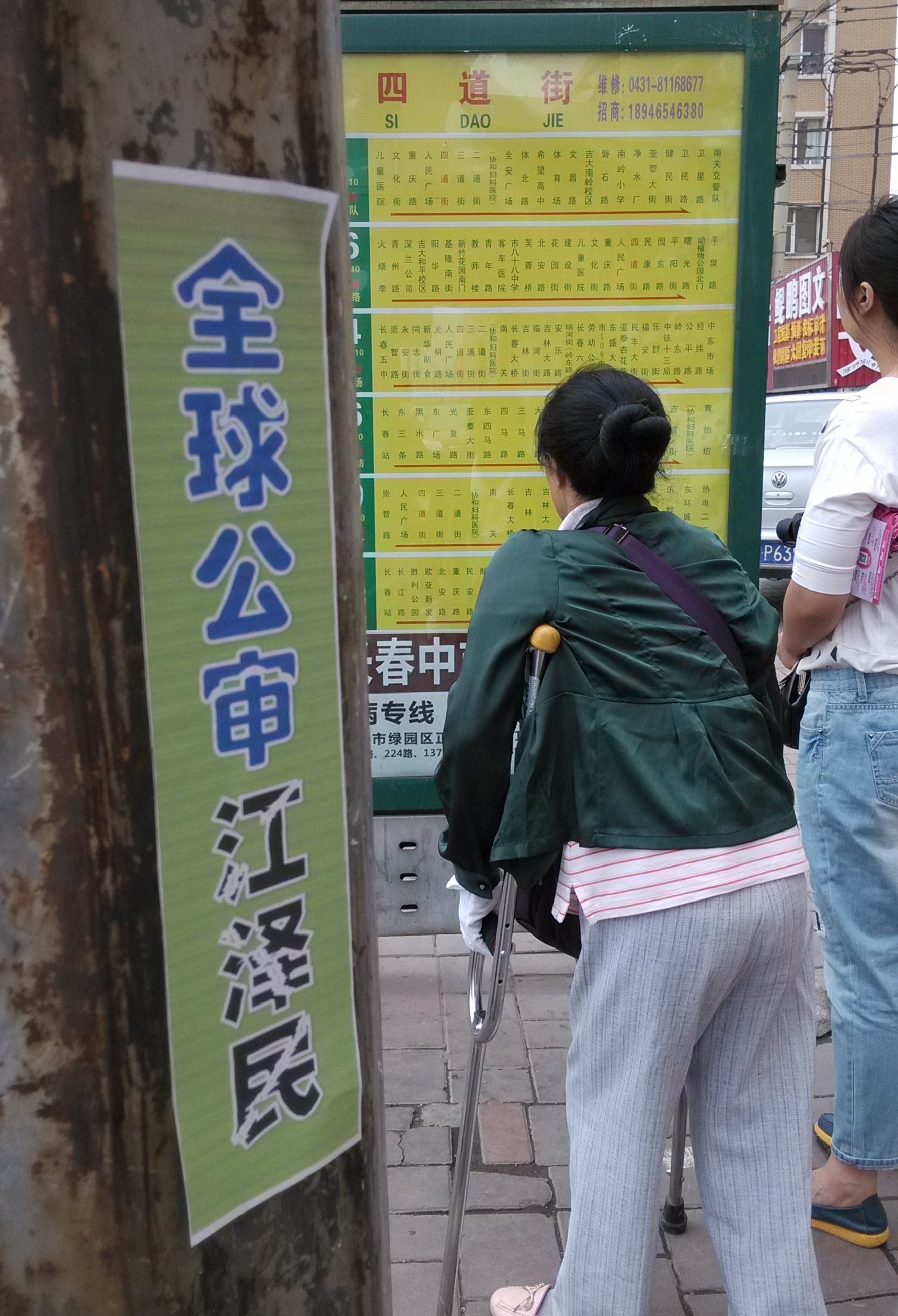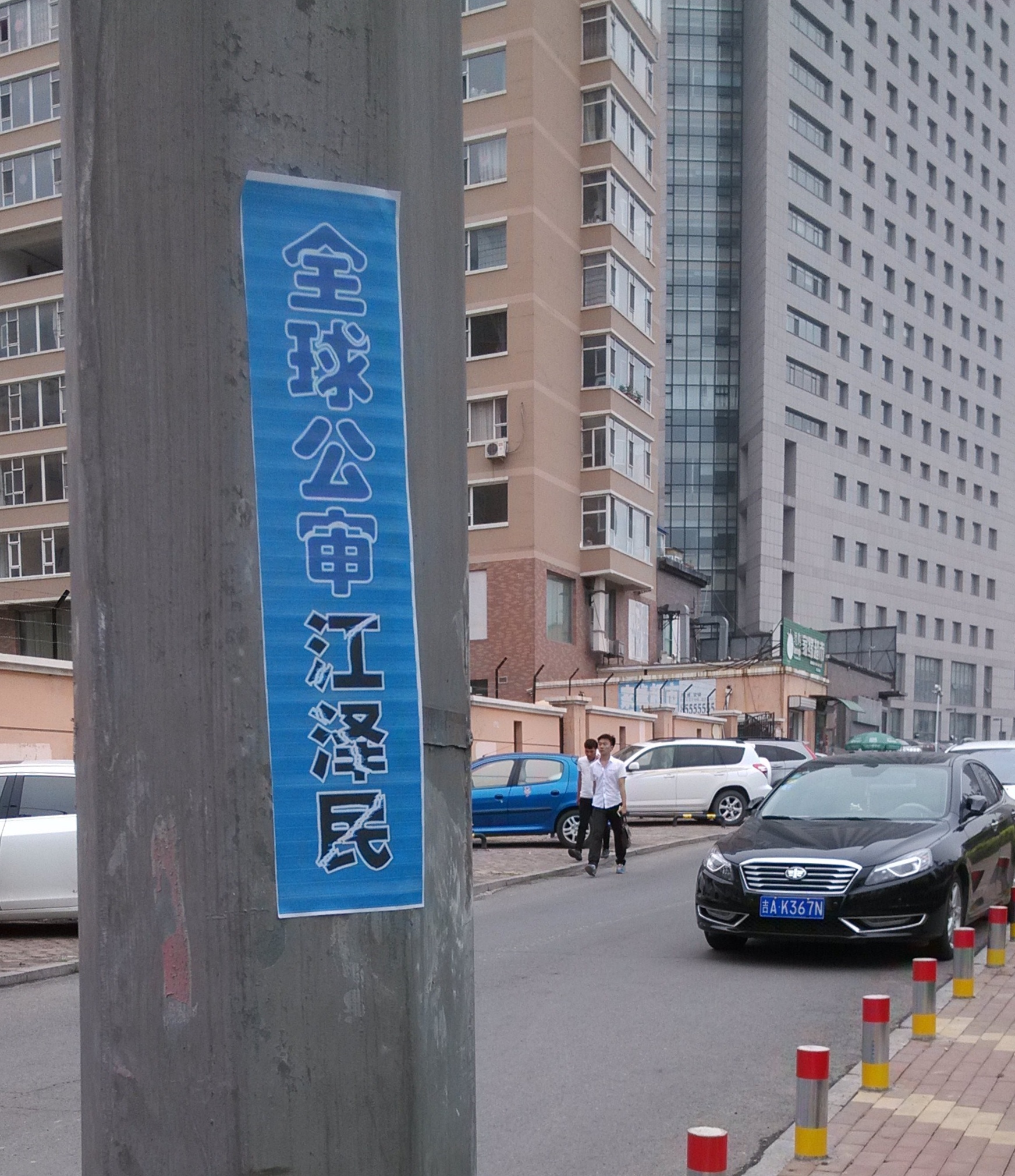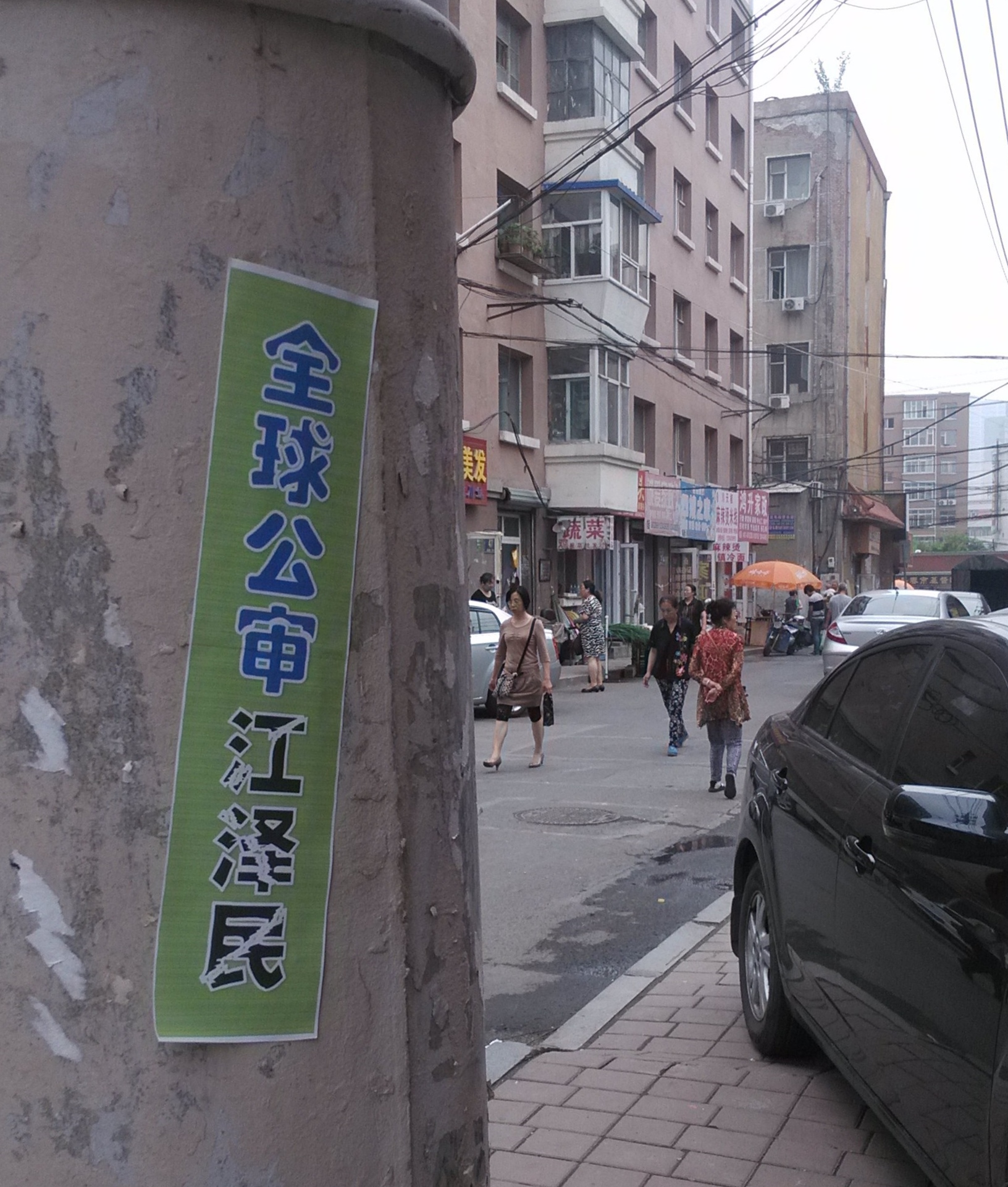 吉林市街头巷尾出现“全球公审江泽民”等标语(图)