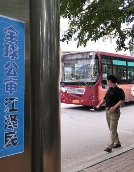 法轮功的元凶江泽民,这一讯息也在大陆民众中迅速传播。近日,长春大街小巷、公园等多处出现“全球公审江泽民”的标语。