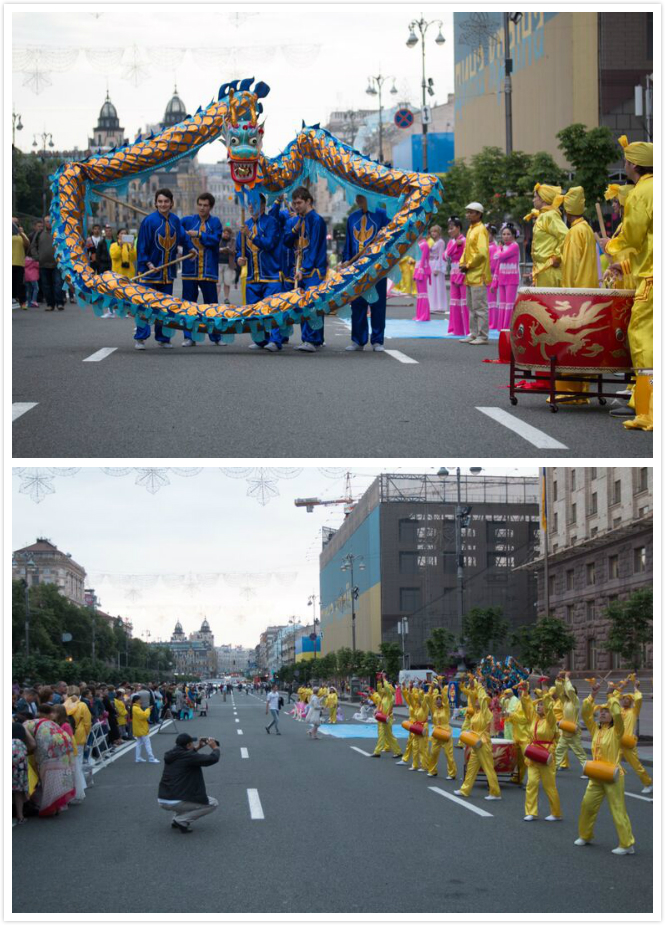 ![]() 在基辅市中心最繁华的步行大道展示功法 |