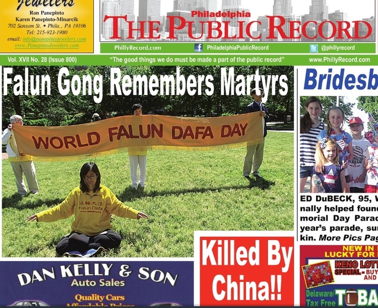 ![]() 图:当地媒体《费城公共纪录报》(The Philadelphia Public Record)对法轮功活动进行了报导,并配有法轮功学员在自由钟国家公园草坪上祥和炼功的图片,以及“庆祝法轮大法日”的横幅。(网络截图) |