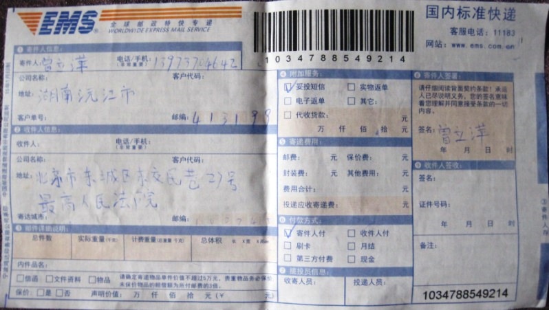 二零零零年七月,我又和沅江四个同修一起进京护法,我们又在中途被火车乘警与沅江公安合谋拦截,回来后又把我非法关押在公安局那个又脏又臭的黑屋子里,几天后再把我非法关押在看守所一个多月,勒索家属现金二千元(无收条)。