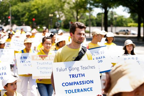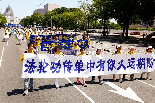 法轮功学员手持“停止迫害、法办元凶”,“法轮大法好”,“世界需要真善忍”“法办江泽民”,“声援六万多民众诉江”,“全球声援退出中共”等横幅和真相展板,一路走过国会山、宪法大道,途经美国司法部、联邦调查局(FBI)等政府机构,还经过白宫,最终到达华府的地标——华盛顿纪念碑,全程共1.3英里,游行队伍绵延数百米。