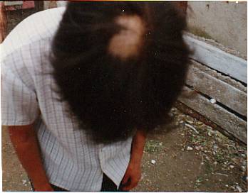 图:李秀文的头发被恶警贾宝臣撕掉一大把