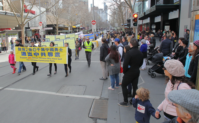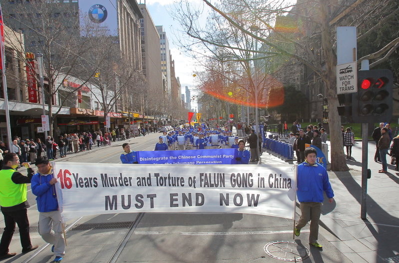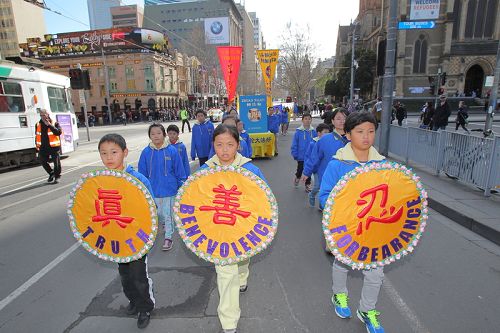 当天墨尔本一扫连日来的绵绵冬雨,湛蓝的天空、明媚的阳光下,法轮大法游行队伍绵延数百米,游行队伍途经市中心繁华的商业区及唐人街,最后到达终点站维多利亚花园(Victoria Park)。全程历经一个小时。