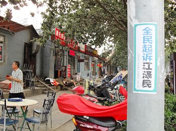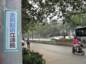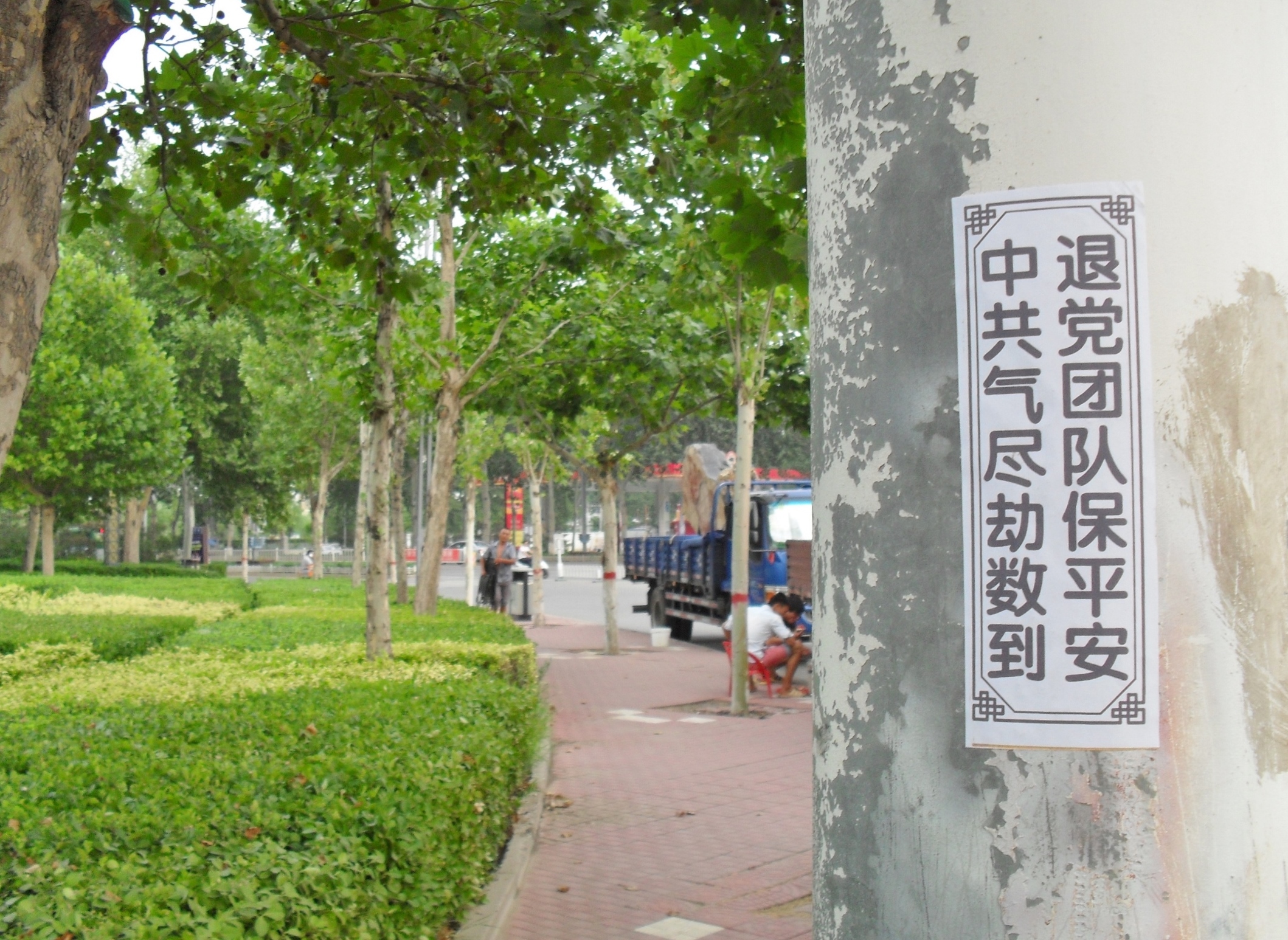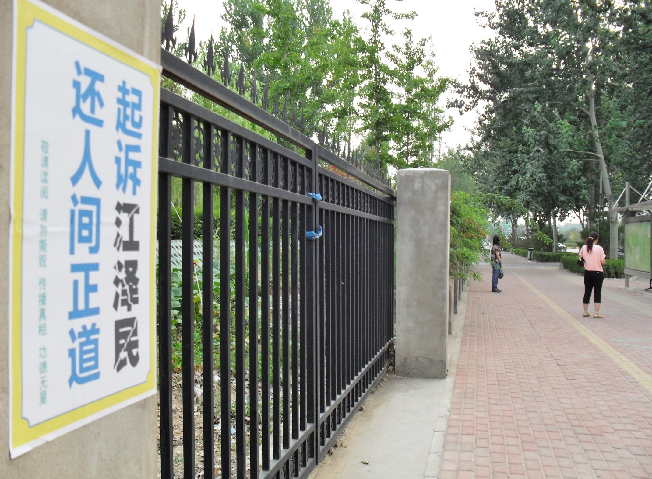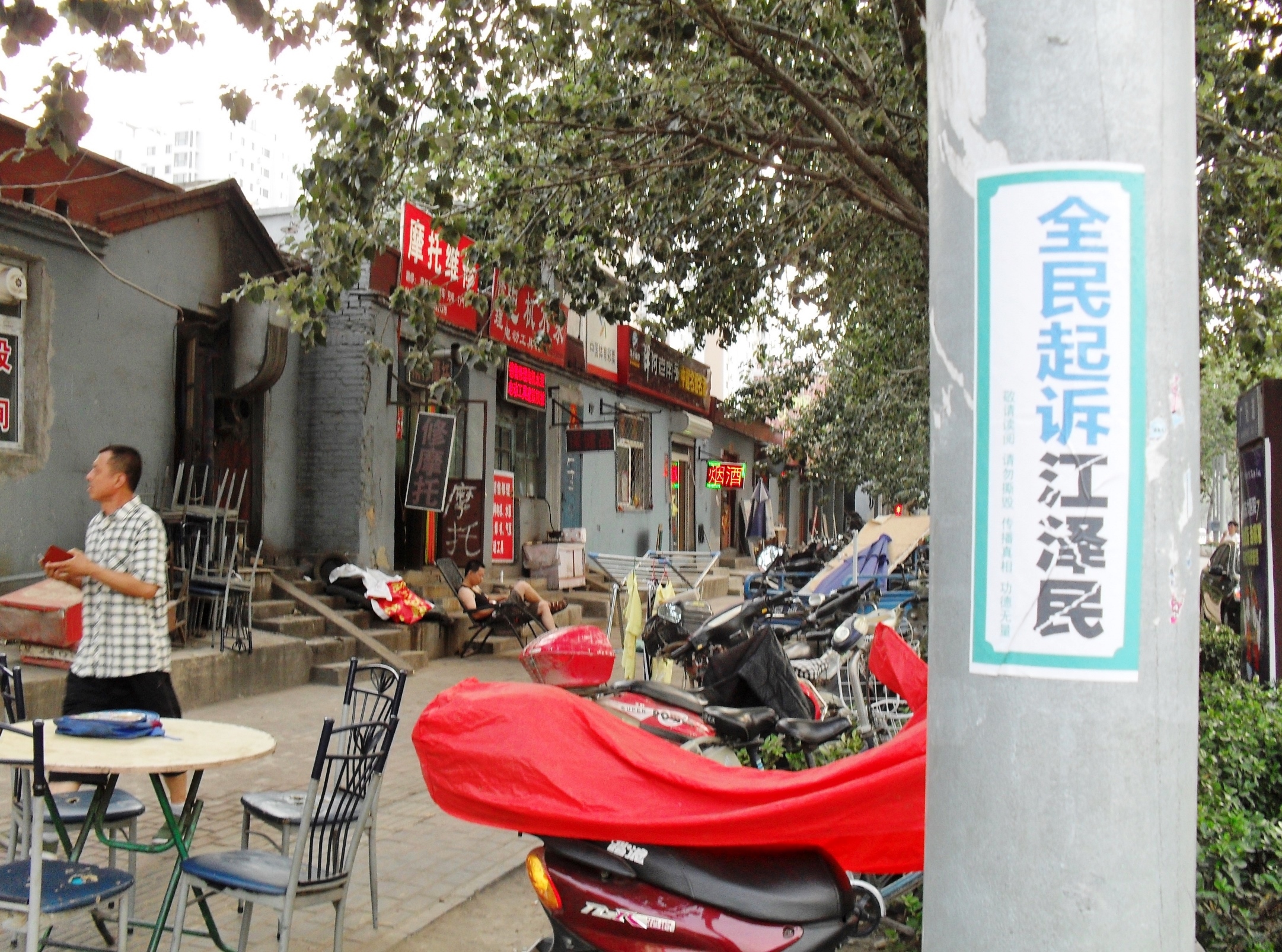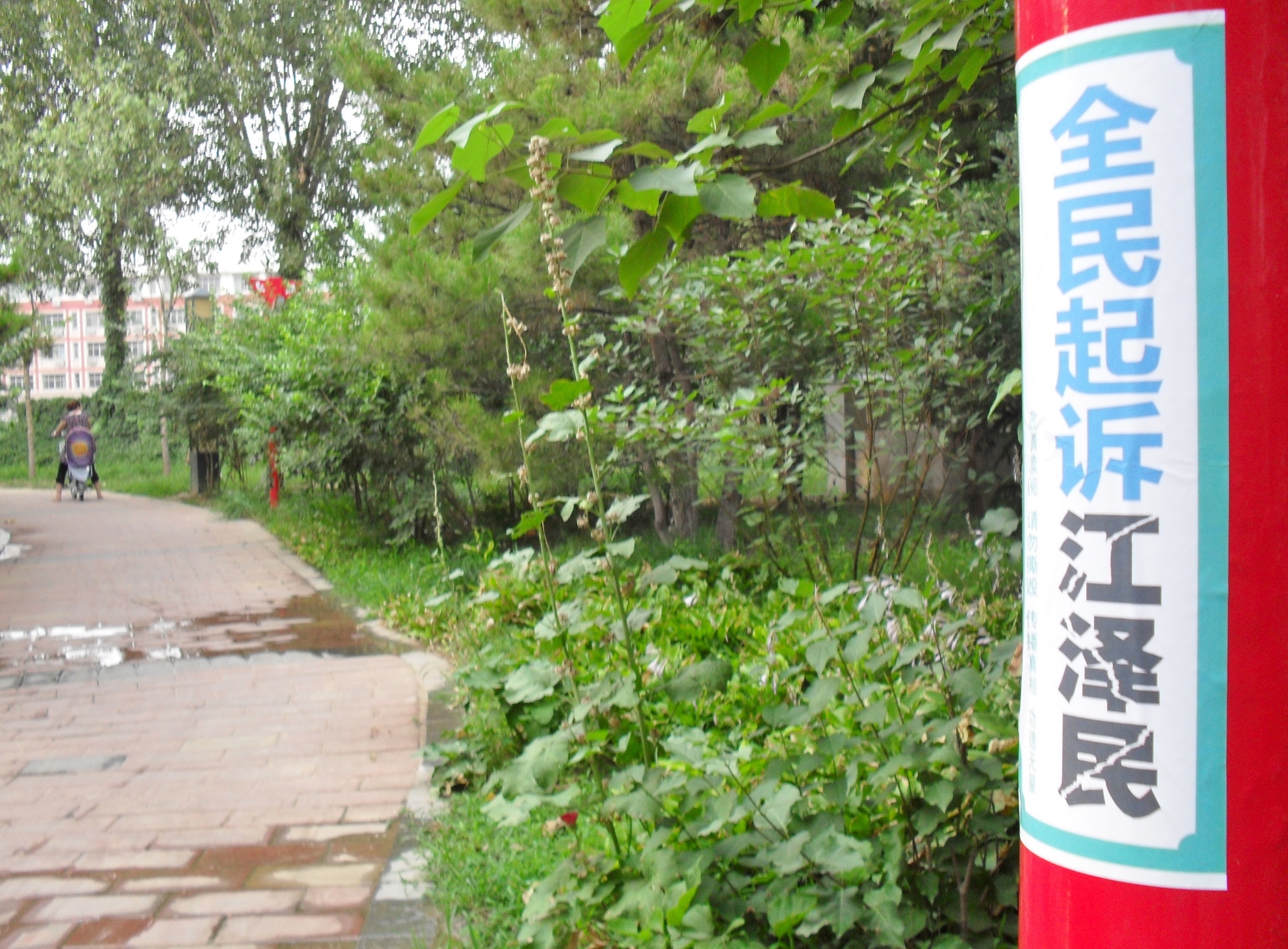河北省廊坊市多处可见“起诉江泽民”的真相标语
