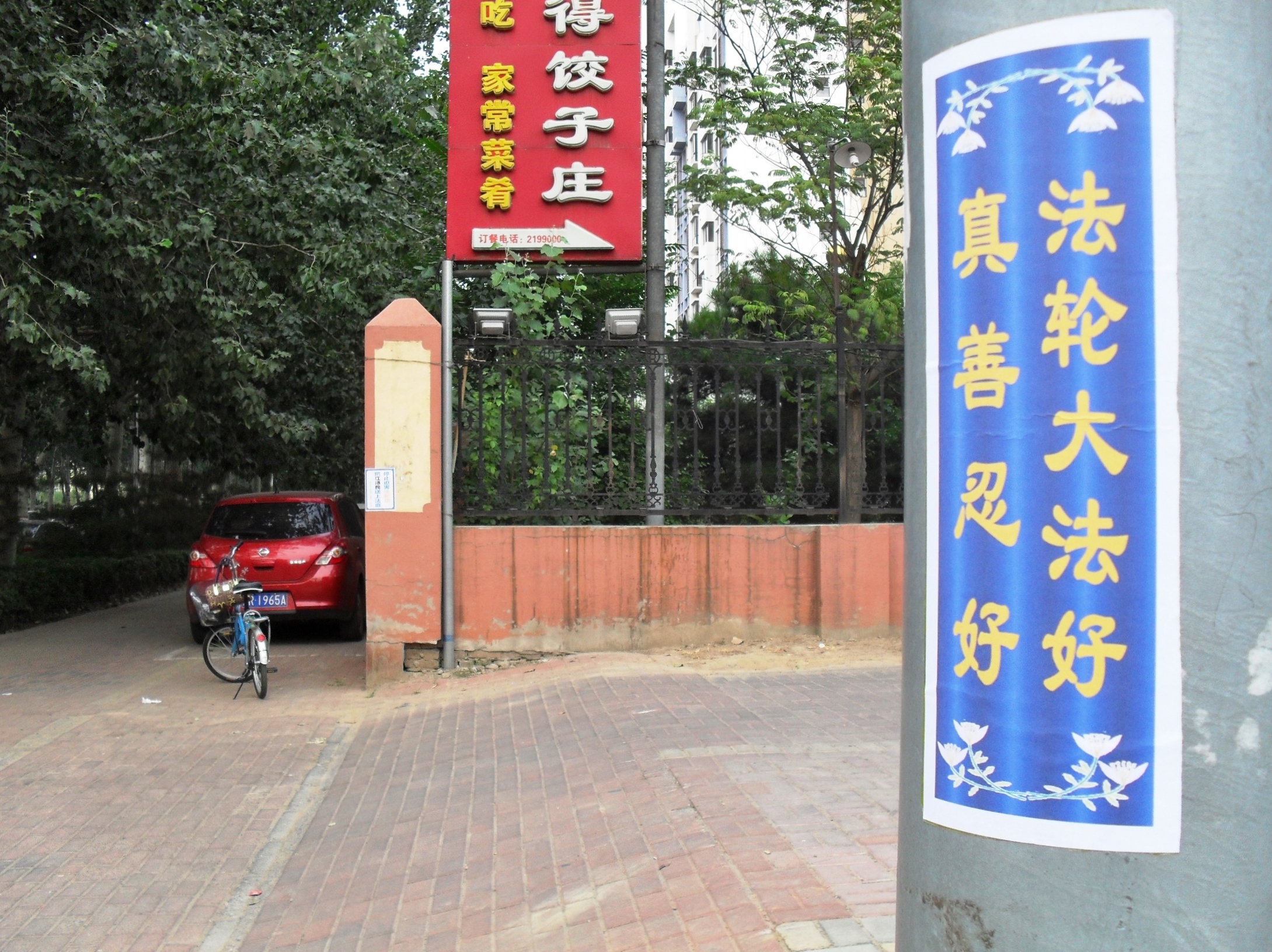 【明慧网二零一五年七月二十日】在河北廊坊的大街小巷,人们都可见到真相标语:“世界需要真善忍”、“法轮大法好”、“真善忍好”、“停止