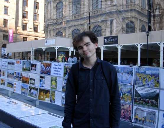 青年学生丹尼尔久久不肯离去,他向学员询问什么是法轮功,中共为什么如此残酷迫害善良民众。了解真相后,他感到非常愤慨和震惊,在征签簿上郑重签名,并表示一定要把真相告诉更多的人。