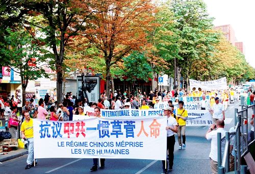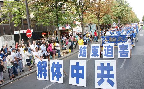 游行队伍从美丽城出发,途经华人众多的十一区、三区,到达巴黎市政府广场。下午的游行从意大利广场出发,通过老唐人街——十三区繁华街道。队伍所到之处,吸引了很多中西方民众,人们想关心、要了解法轮功真相。