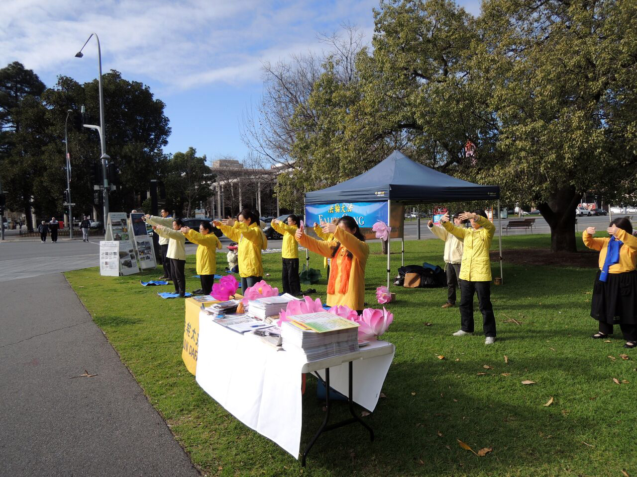二零一五年七月十八日上午,澳大利亚南澳法轮功学员聚集在阿德雷德市中心的Hindmarsh广场,举行“七‧二零”反迫害纪念活动。学员们打出“制止中共活摘法轮功学员器官”、“全球控告迫害元凶江泽民”、“法轮功教人真善忍”等横幅,并集体炼功,向民众讲述法轮功的美好,揭露中共迫害的残酷,呼吁制止迫害,并声援和传播当前的诉江大潮。