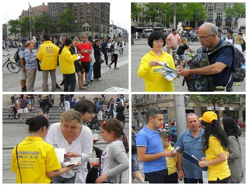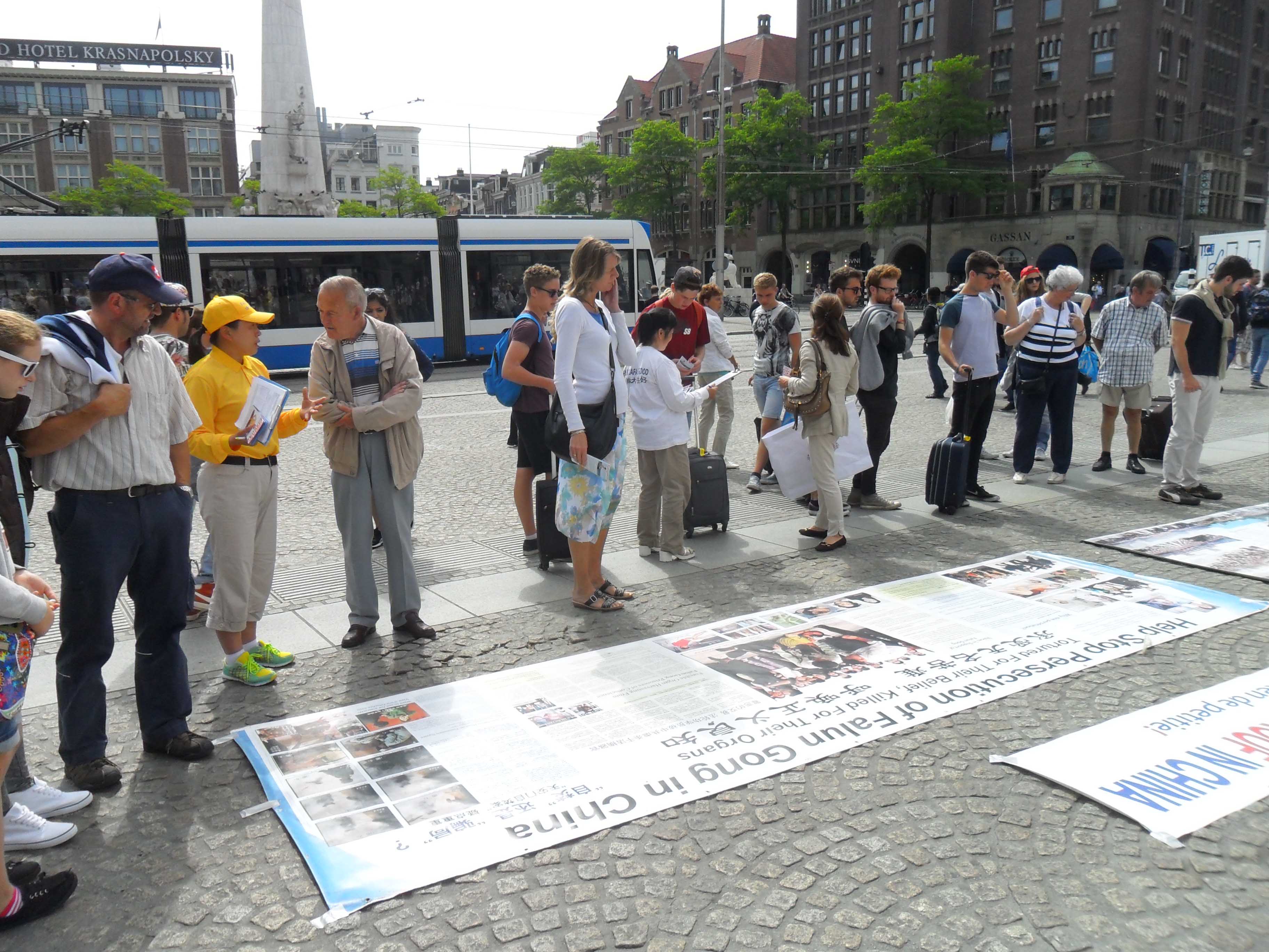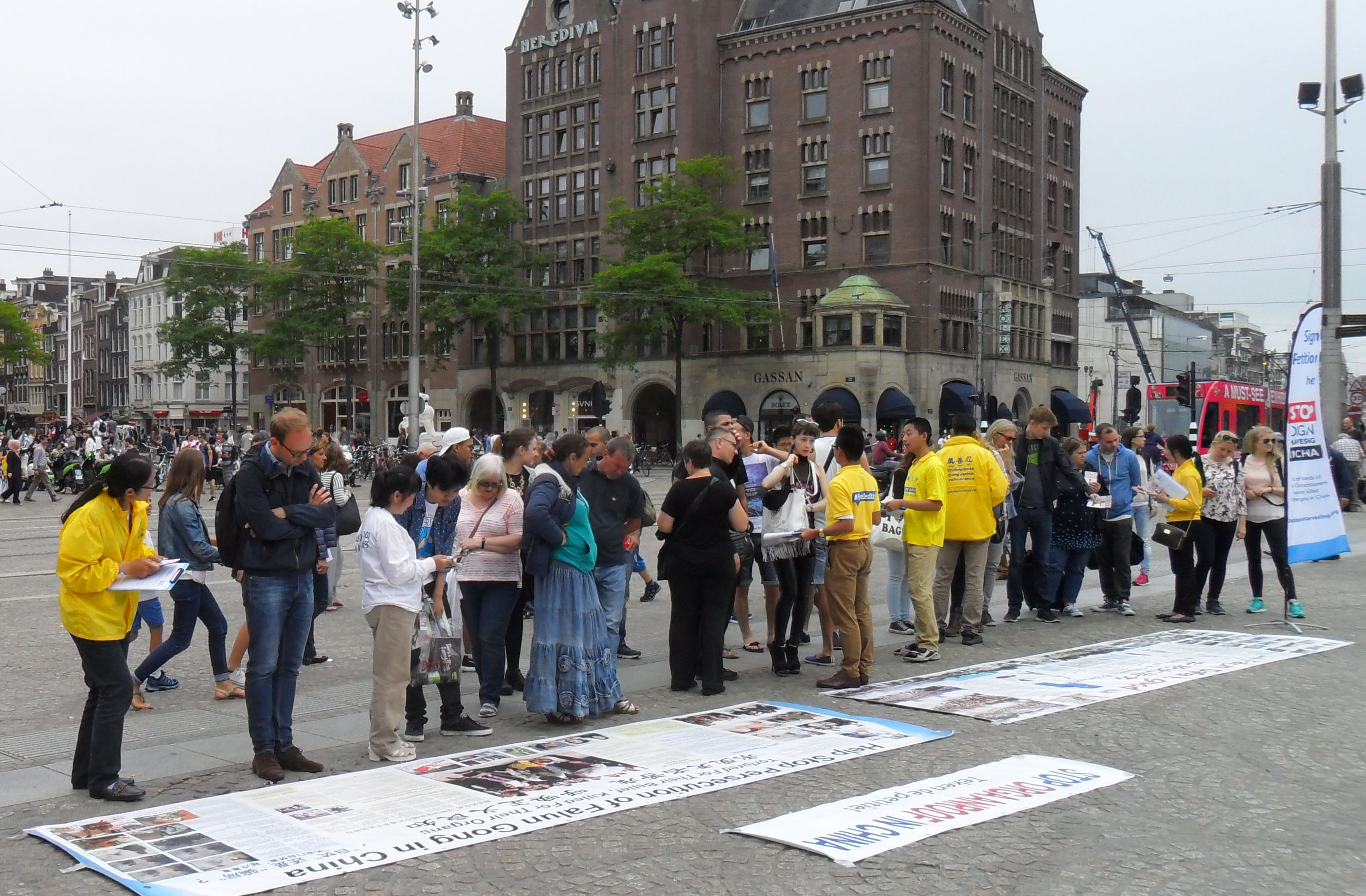【明慧网二零一五年七月二十三日】二零一五年七月二十日,荷兰学员来到首都阿姆斯特丹达姆广场设立真相点,传播法轮功的真相,及声援全球起诉江泽民。