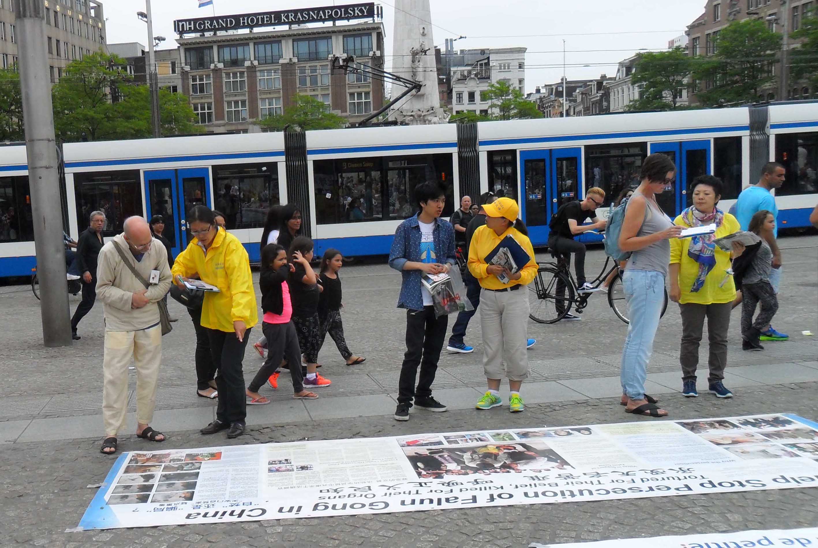 图1:“七•二零”周年,荷兰学员在首都阿姆斯特丹达姆广场传播真相,呼吁制止迫害