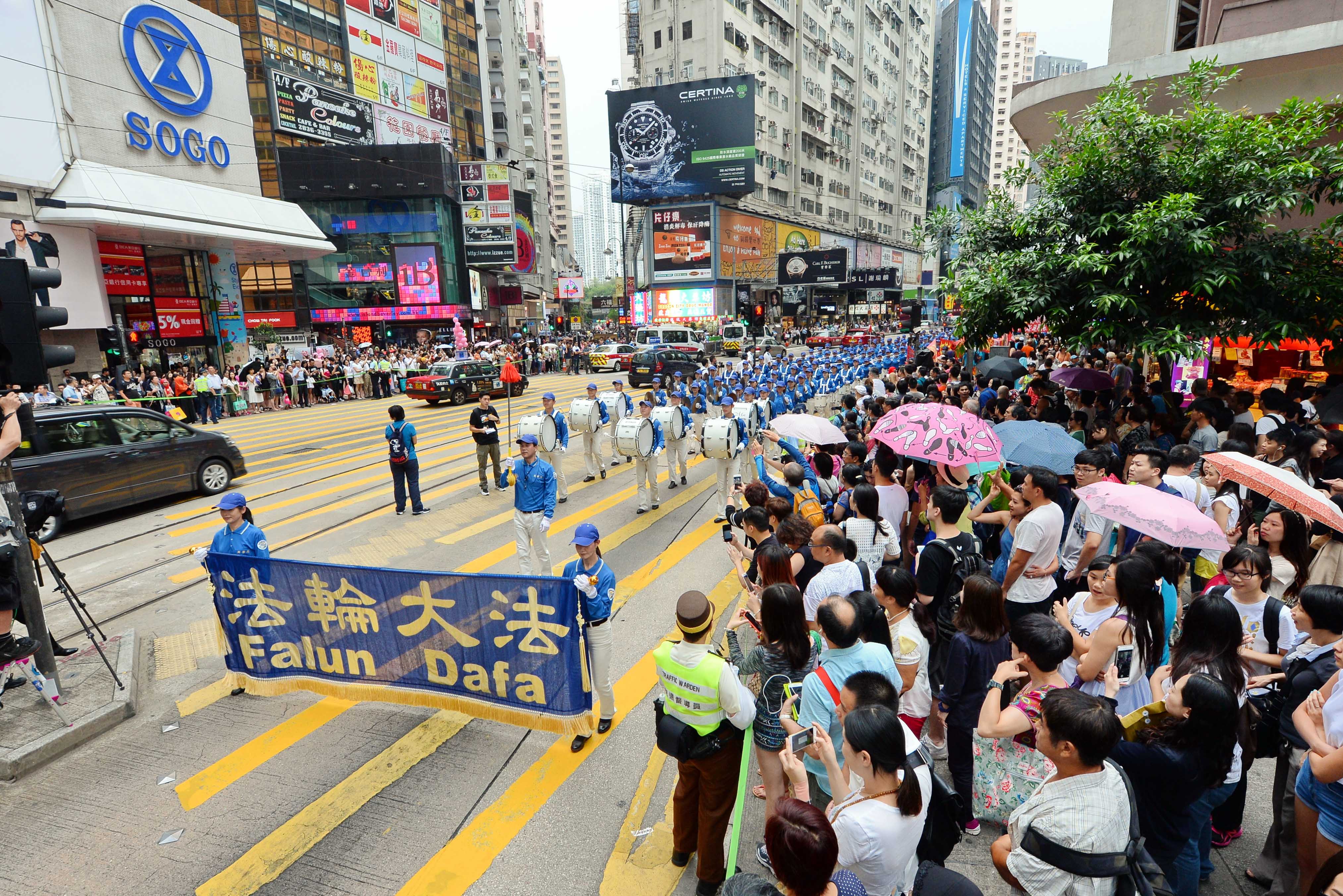 参加活动的法轮功学员,来自各行各业,有着不同的人生经历,但他们都在法轮大法的修炼中深深受益,并且有着共同的心愿:传播大法的美好,早日制止迫害。他们利用周六、日休闲假期,顶着艳阳烈日走过九龙区及港岛热闹市区,将法轮大法的美好介绍给更多世人知晓,用法轮大法弘传盛况的事实,粉碎中共的恶毒谎言。祥和又庄严的队伍震撼人心,在民众心中留下深刻的印象。