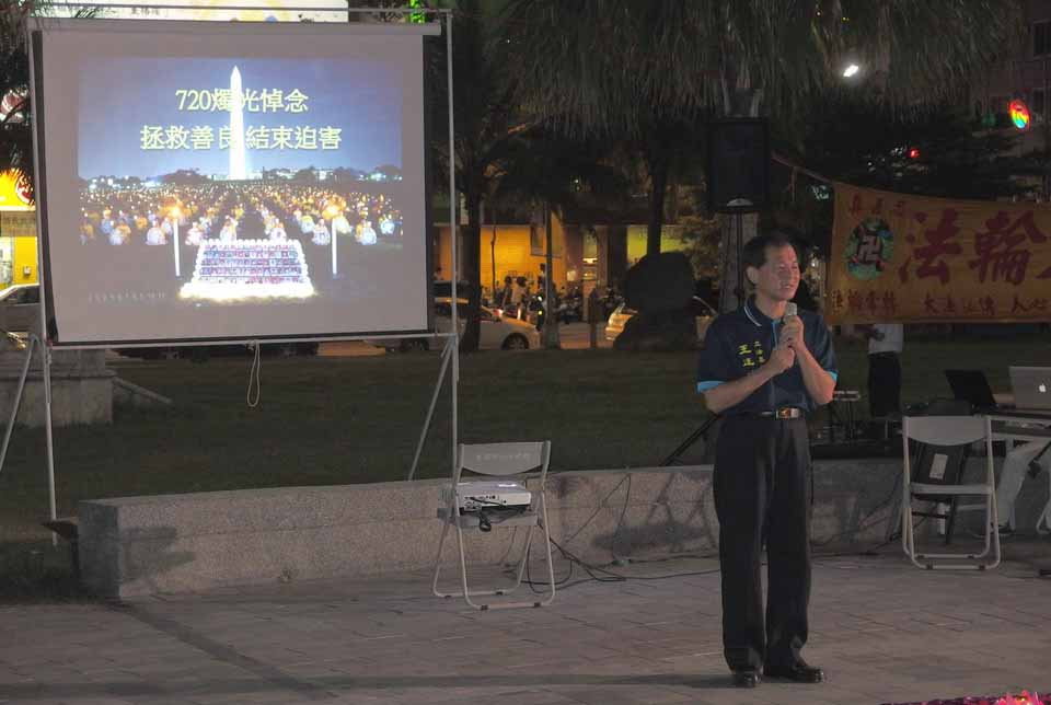 花莲市公所机要秘书王森园代表花莲市长田智宣参加烛光悼念会,王专员表示,人权是普世的价值,中共活摘器官的行为令人发指,呼吁中国政府要立即停止迫害。他对法轮功学员多年来不畏中共庞大、蛮横的政权,大家都勇敢地站出来坚持反迫害的精神,表达内心的敬意。