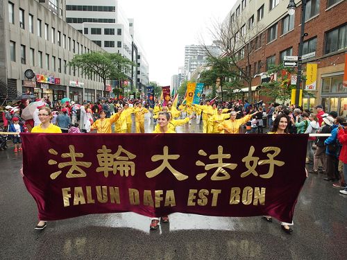 游行从城堡(Du Fort)大街开始,沿繁华的圣凯瑟琳(Ste-Catherine)大街一路东行至菲利普斯广场(Place Phillips)大街,天国乐团沿途一遍遍演奏《法轮大法好》、《法鼓法号震十方》、《法正乾坤》、《送宝》、和《永远的枫叶》等曲目。许多人随着演奏音乐的节奏舞动、欢呼。