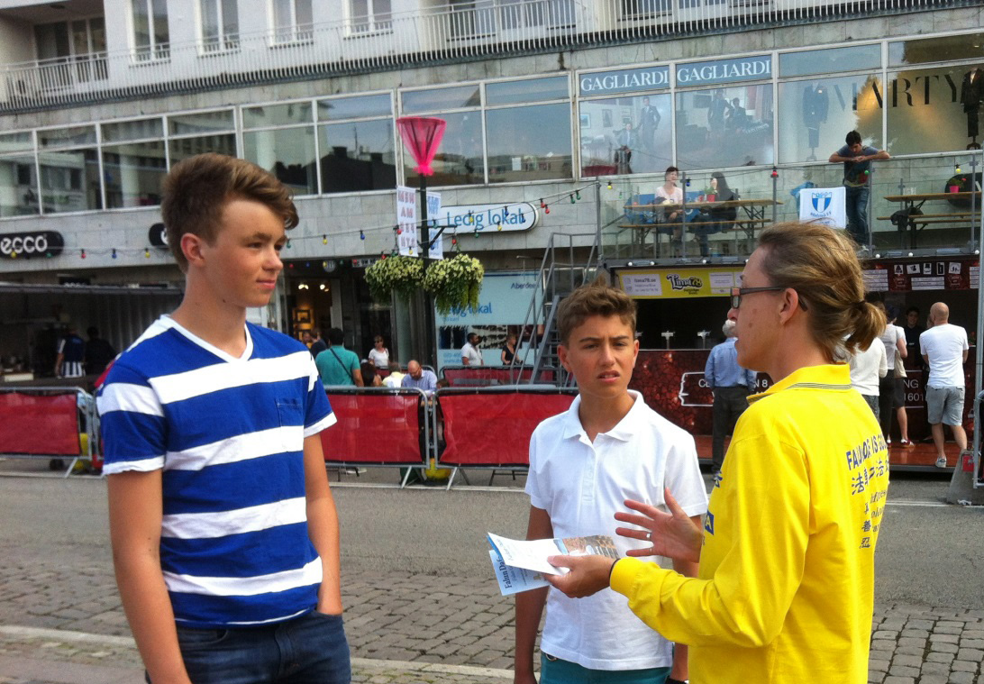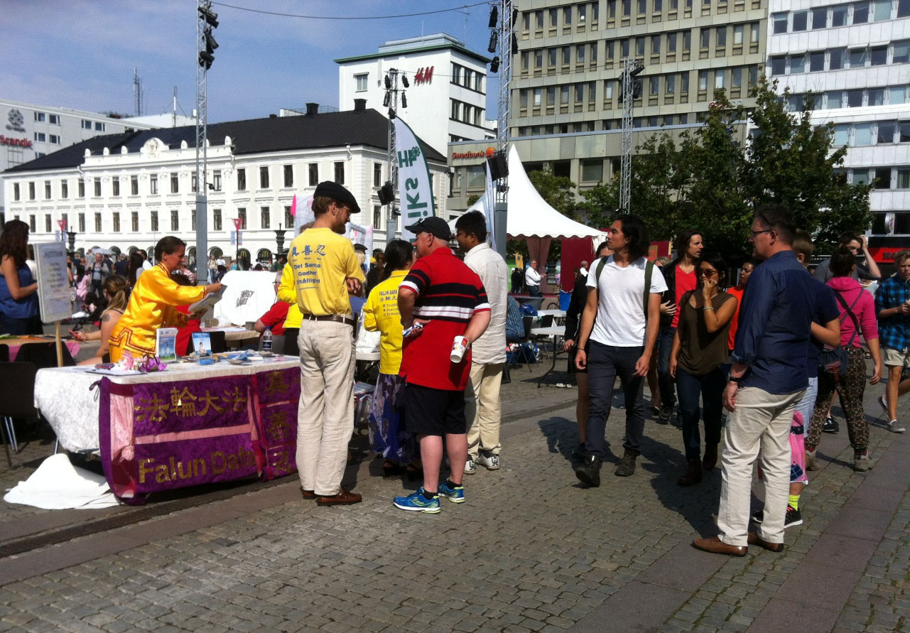 二零一五年八月十六日,瑞典法轮大法协会受马尔默文化节主办方邀请参加了文化节,并受邀在文化节舞台上演示功法。法轮功学员们在文化节上设立了真相展位,展示大法的美好和传播大法真相,同时揭露在中国正在发生的对法轮功学员的残酷迫害及活体摘取器官的罪恶。很多民众主动地走到展位前了解法轮功真相,并在反活摘征签表上签名。