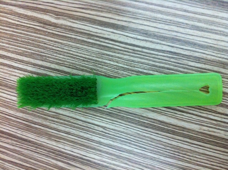 ![]() 凶器证据:劈裂的鞋刷柄 |