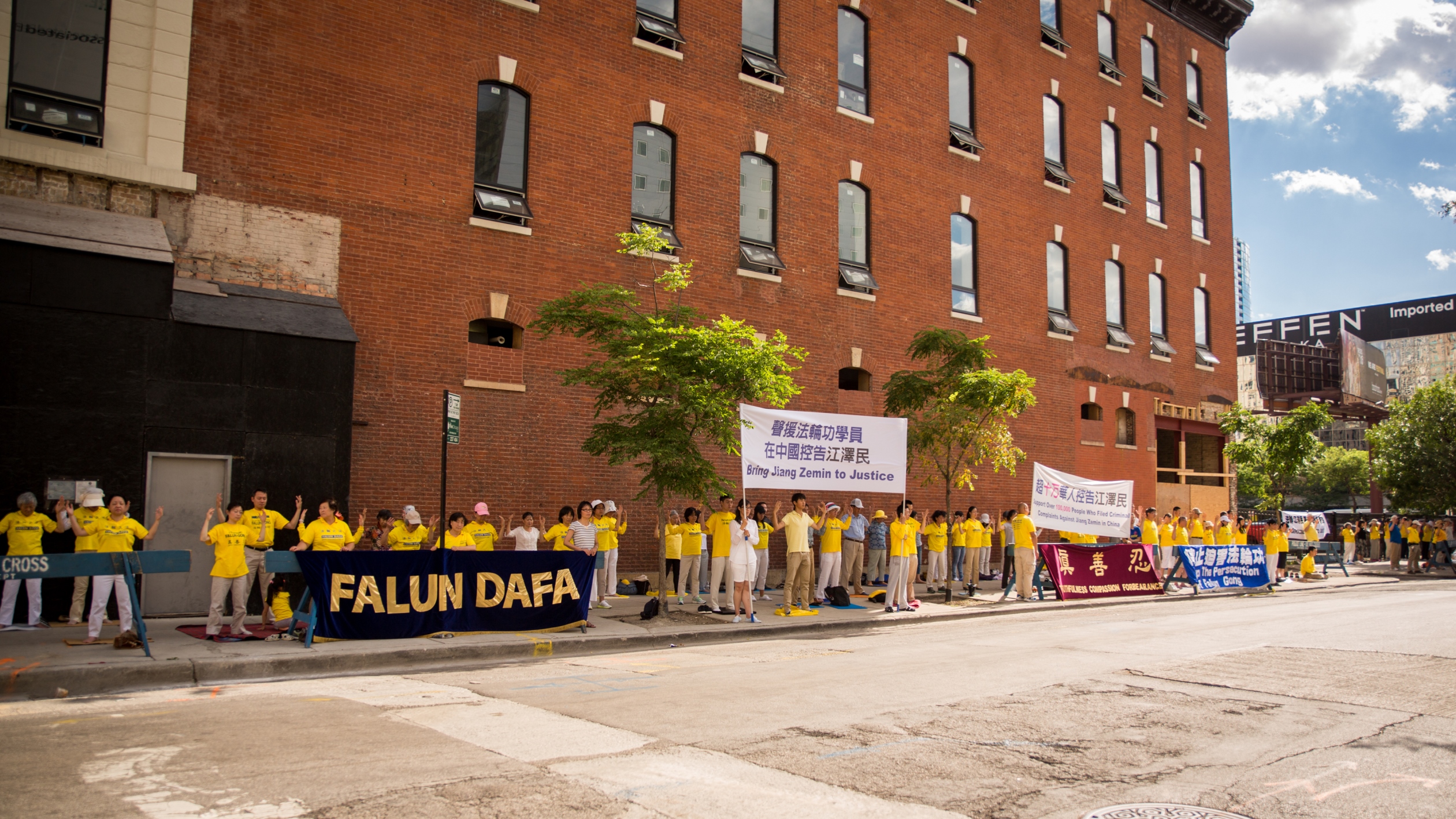 ![]() 图3:法轮功学员在芝加哥中国城游行,声援诉江潮 |