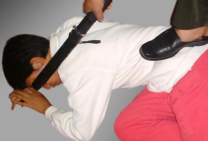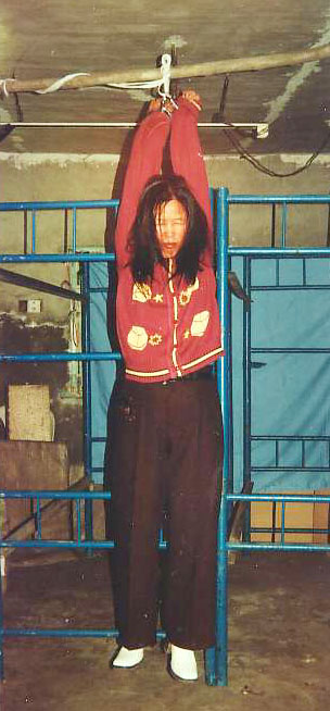 二零零四年,安全厅看守所的警察常副处长、所长刘浩等逼迫何炳英喊“警察好”,遭何炳英拒绝后,常副处长暴跳如雷,拿高压电棍电击何炳英的手臂、头部。两天后,常副处长又逼何炳英大声喊“警察好”,再次遭何炳英的拒绝,这时常副处长唆使警察杨学民把何炳英单手吊铐在审讯室高处的铁管上,何炳英只能脚尖点地,这样整整吊铐了一整天,还罚一天不准吃饭。