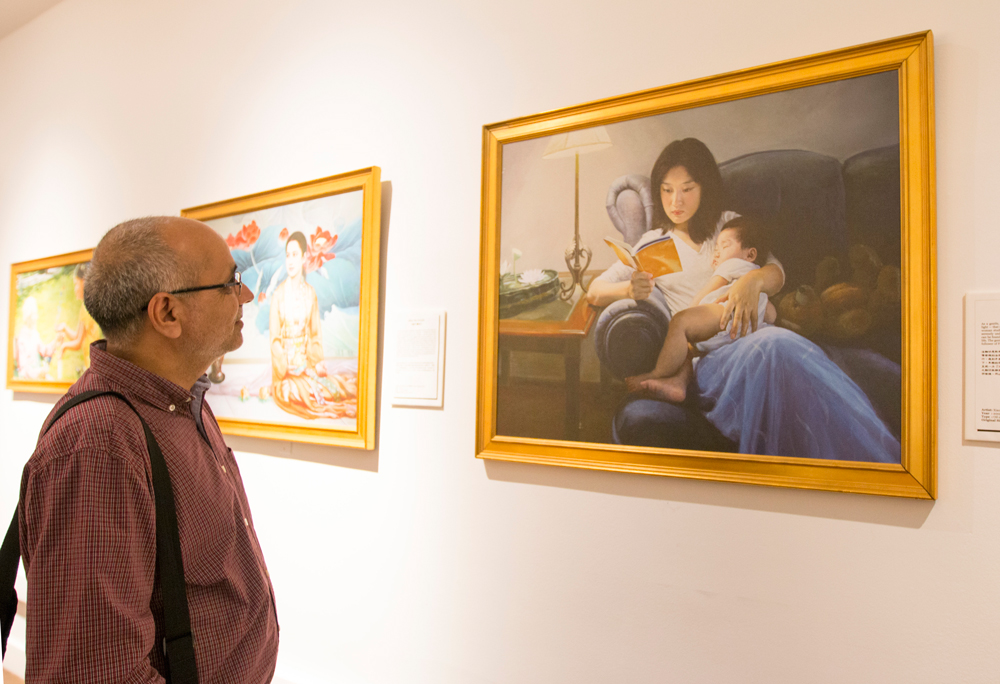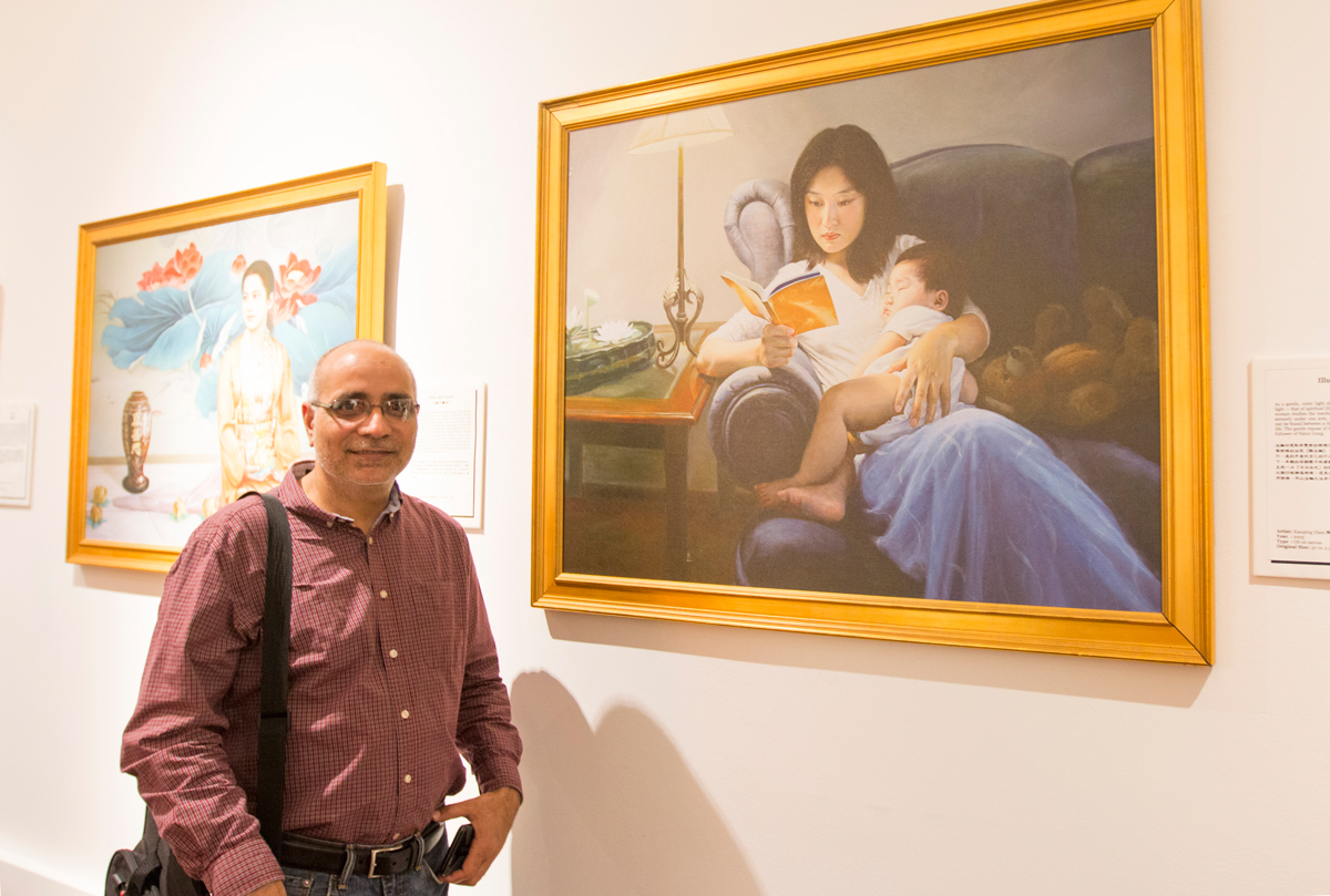 在画展上,还有不少观众跟记者交谈表达内心的感动。在美国联邦储蓄银行任技术顾问的萨特南·南德哈(Satnam Nandha)表示,他被法轮功学员的画作感动。他说:“这些画作展现的境界充满神性。我喜欢所有的作品,非常美好。我能感受到神的存在。”