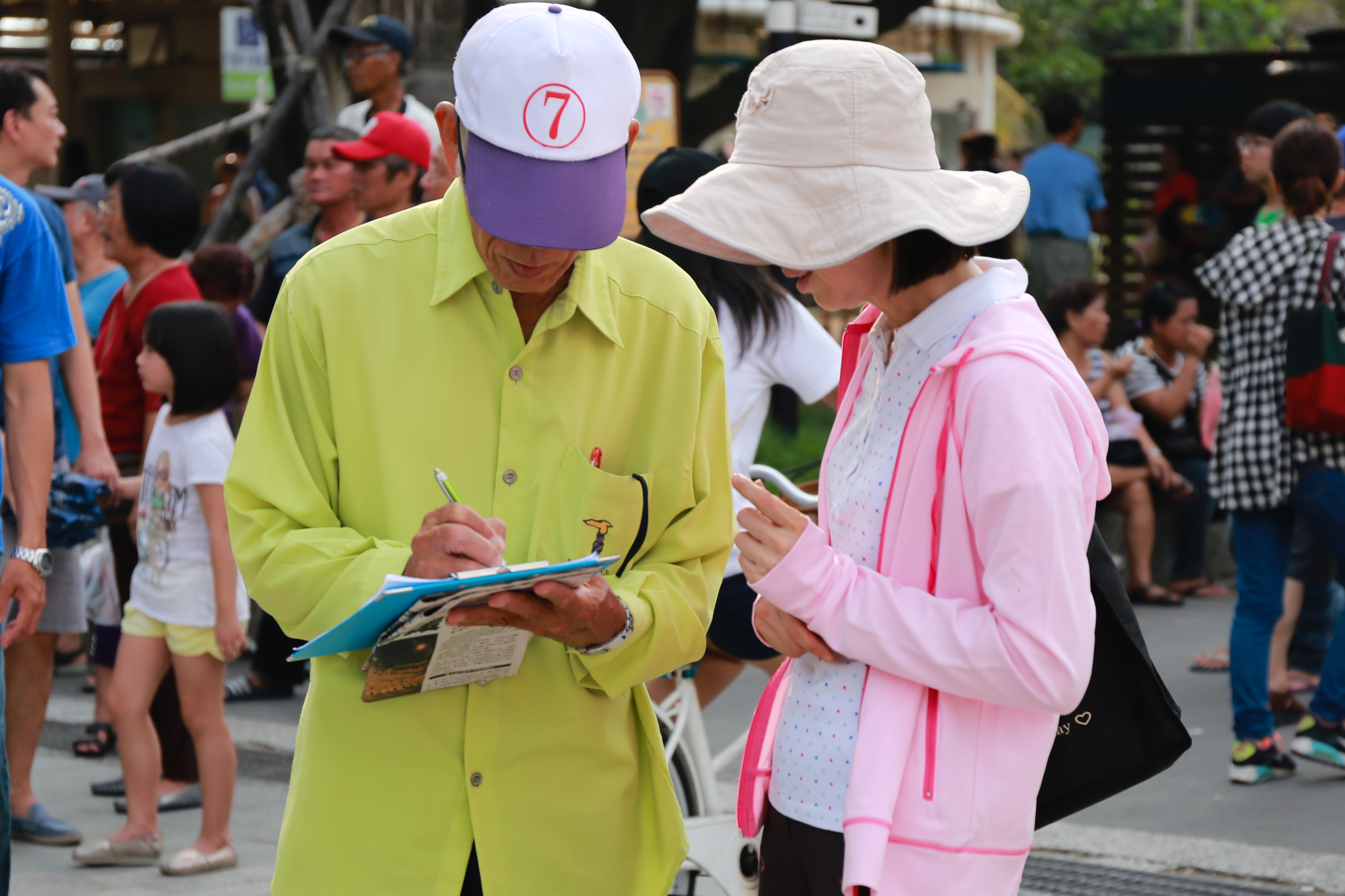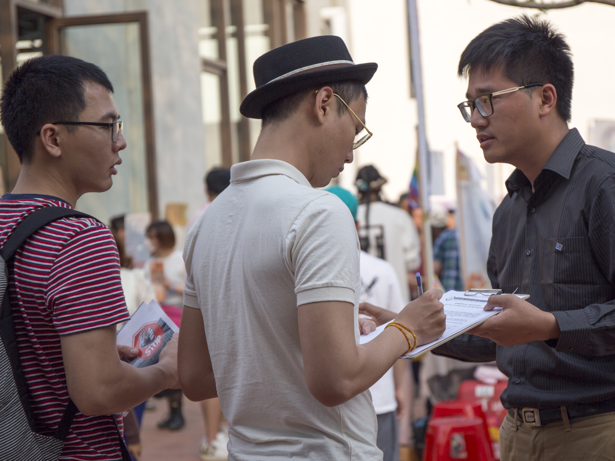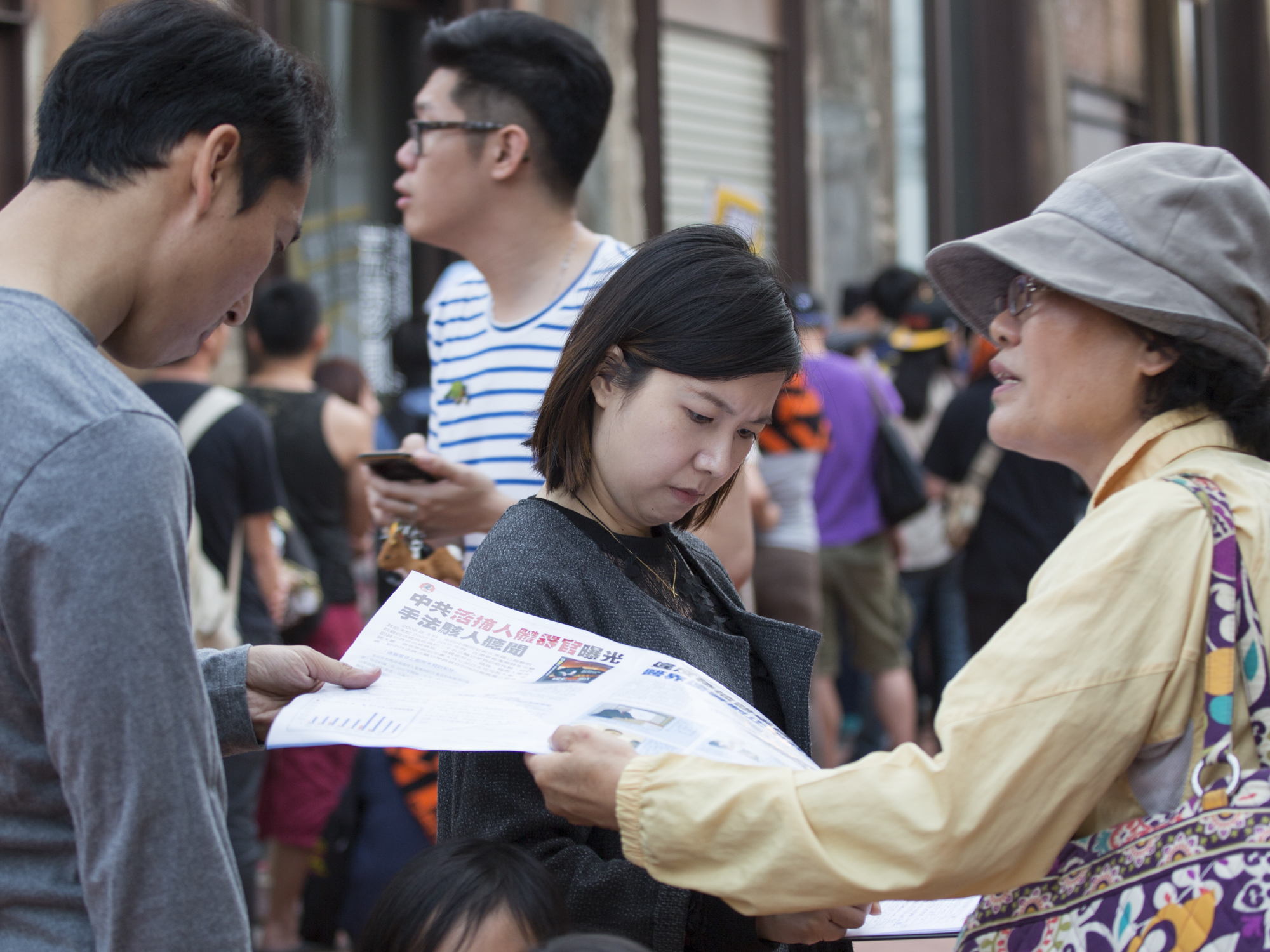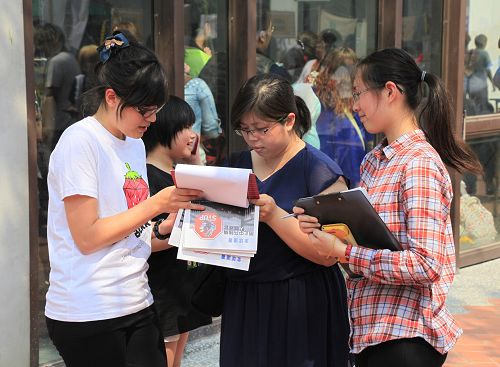 图3-9:高雄市法轮功学员设展位向民众征签,制止中共迫害法轮功,民众响应热烈。了解真相的人们纷纷签名,期盼早日将恶人绳之以法。