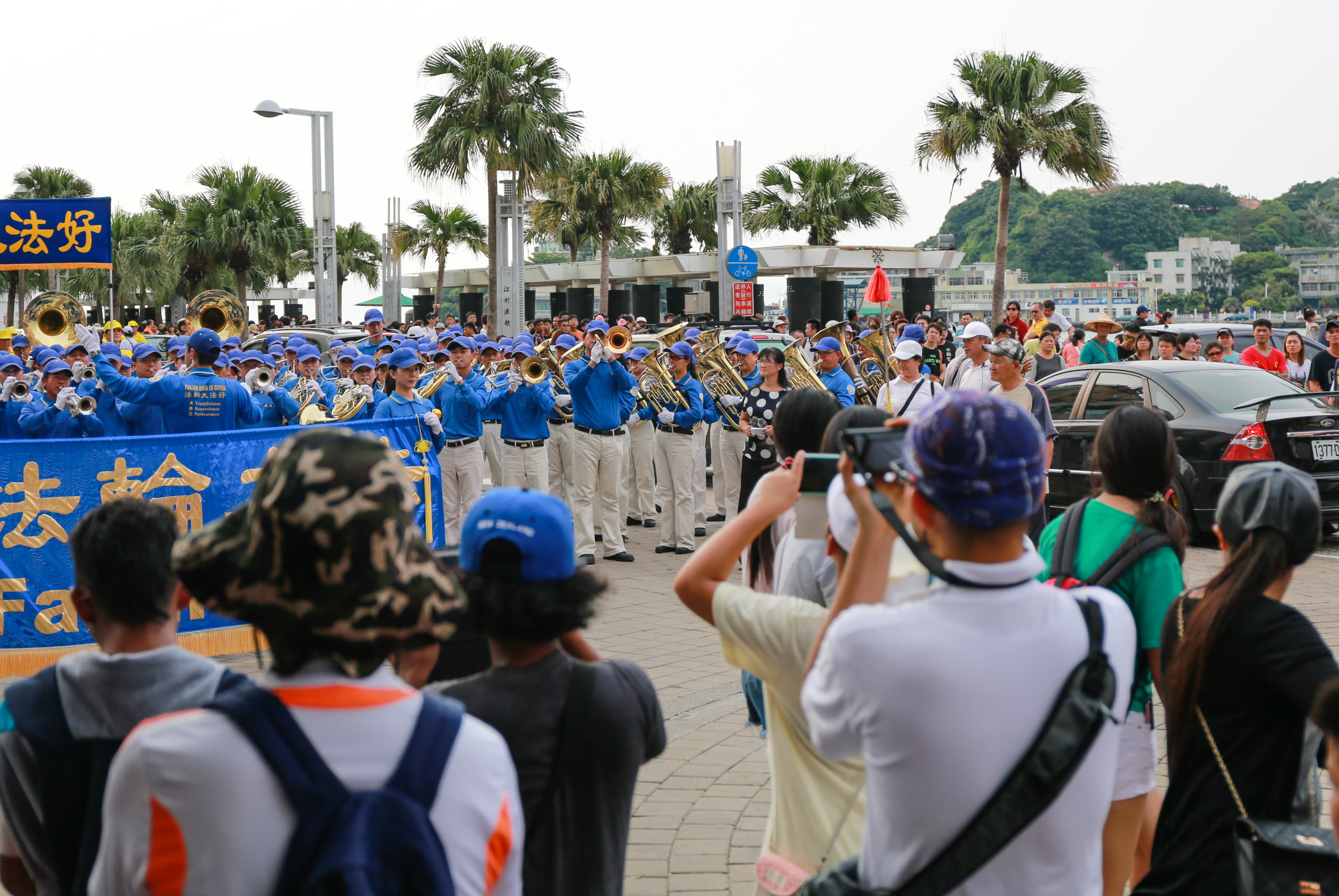 在前镇加工区的退休主管也是义消的洪先生,带着全家七、八个来海边戏水,听到天国乐团的演奏,就跑过来听到,直到演奏结束。他表示:“我很支持法轮功,在六合夜市有看到法轮功学员跟大陆游客讲真相,表现很和善。”他说他看天国乐团的人非常健康,年纪有老有少,年纪很大但还能腰杆挺直,可见法轮功一定很好。洪先生知道中国大陆在打压并活摘器官,也在举报书上签名,并要法轮功加油,我支持你们,不要气馁,法轮功迟早在中国大陆一定会平反的。