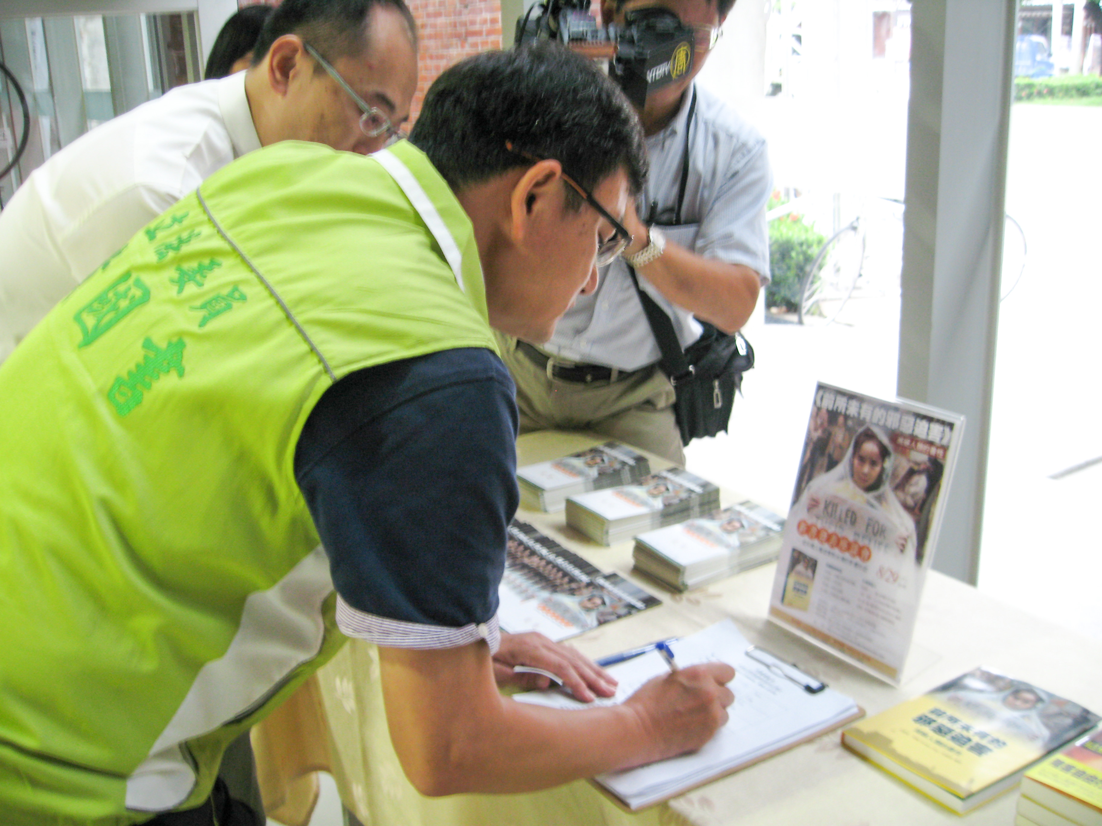 ![]() 图1:立委黄国书正在“刑事举报江泽民”联署书上签名。 |