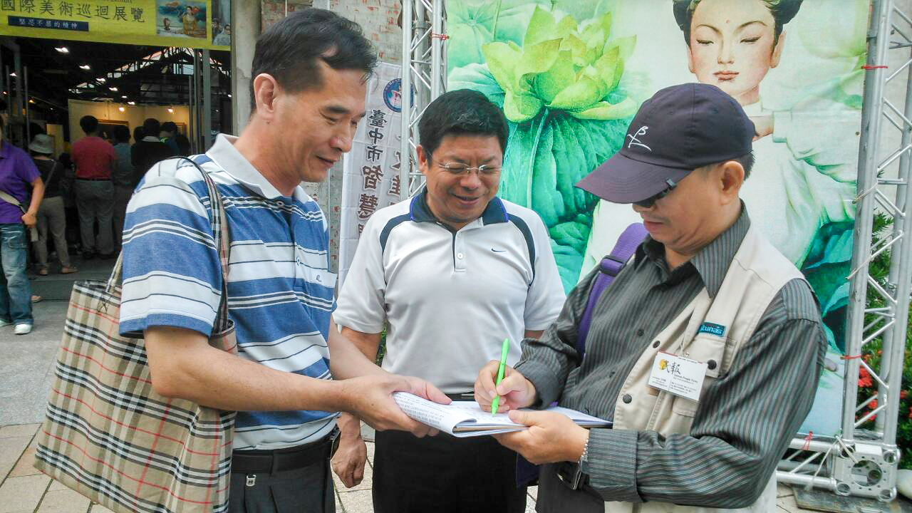 立委黄国书在参观了真善忍国际美展后,听说了目前在大陆的诉江潮,以及全球发起声援,联署举报江泽民一事。法轮功学员请他参与联署,他立即表示:“没问题!”在举报书上签下名字。