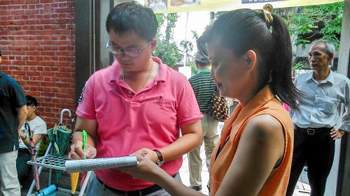 ![]() 图5-7:台中市民在“刑事举报江泽民”联署书上签名,希望能共同制止这场对法轮功的迫害。 |