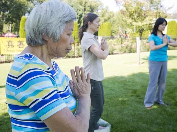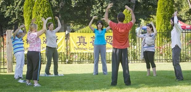 ![]() 法轮功学员每周在玫瑰花园炼功 |