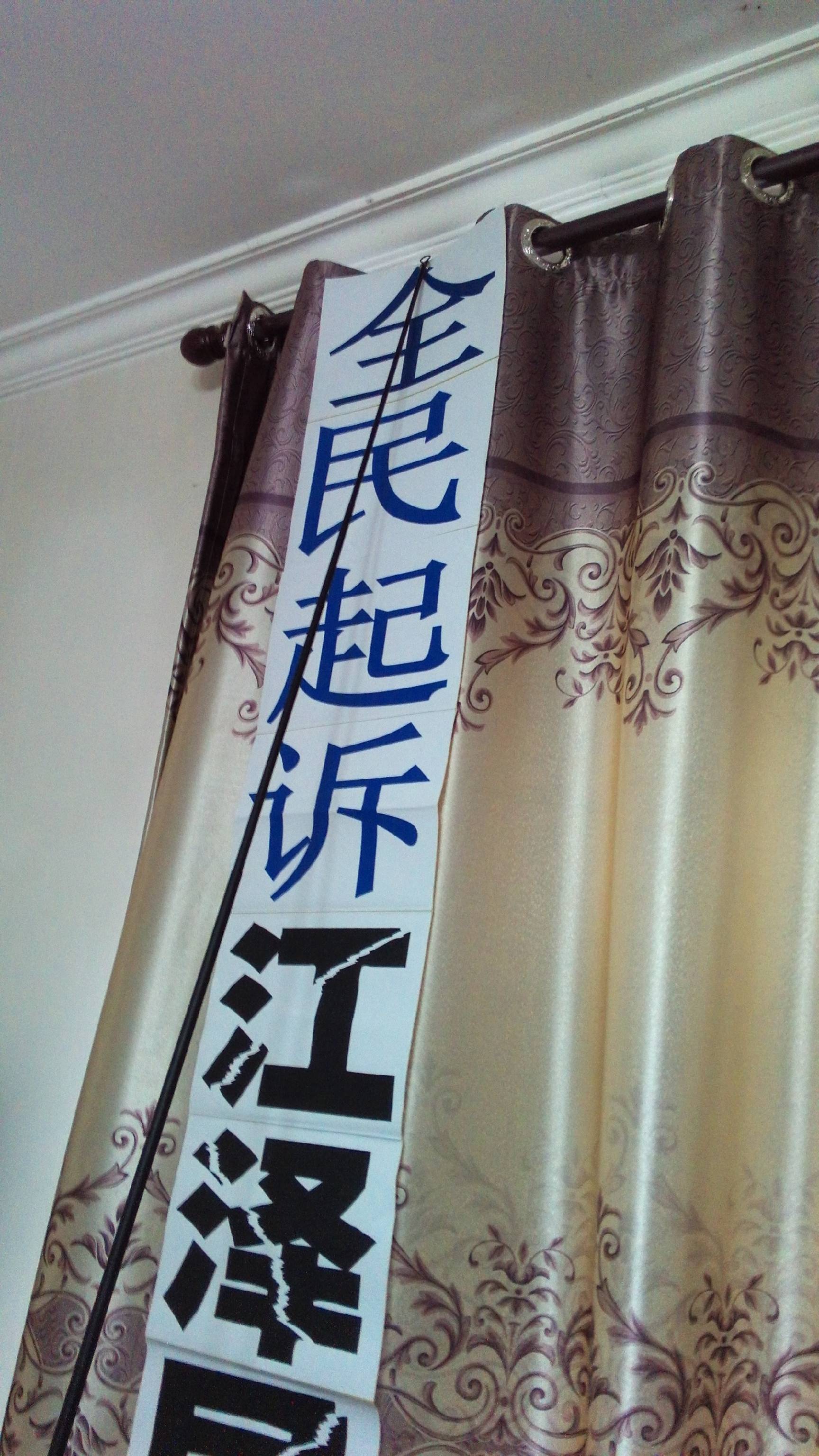 用强力磁铁悬挂条幅、发放真相资料