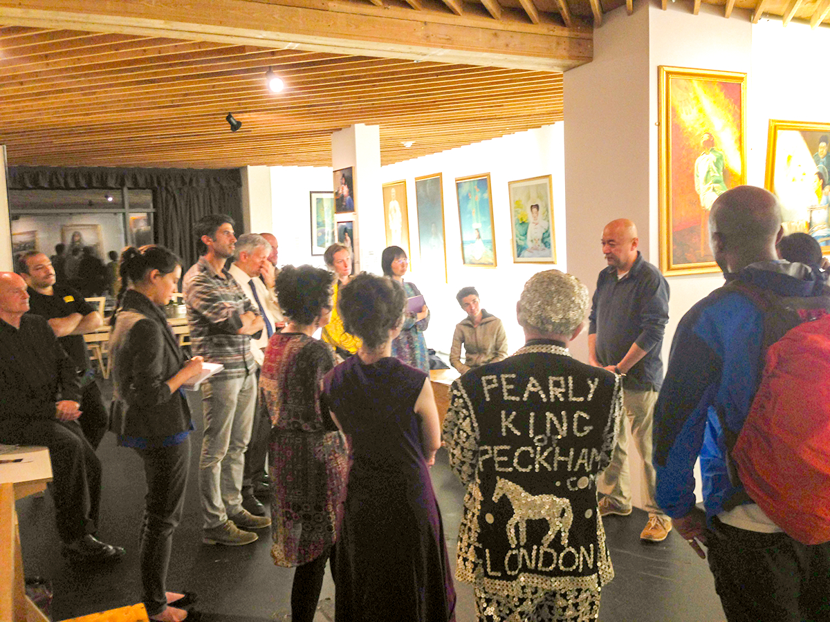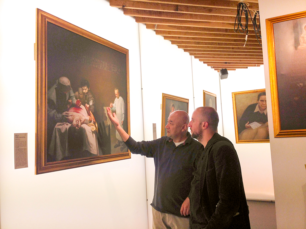 现居伦敦的维吾尔族医生安华·托蒂(Enwer Tohti)也来到画展开幕式,在现场应主办者邀请向来宾讲述自己曾被卷入活摘器官的经历。他介绍说一九九五年他正在新疆当外科医生,医院领导让他参与摘取人体器官的作业。当他刀子划下去时,才发现不对劲,因为被摘器官者身体还会抽搐,血液也还在流动。