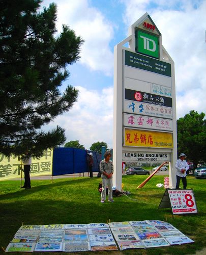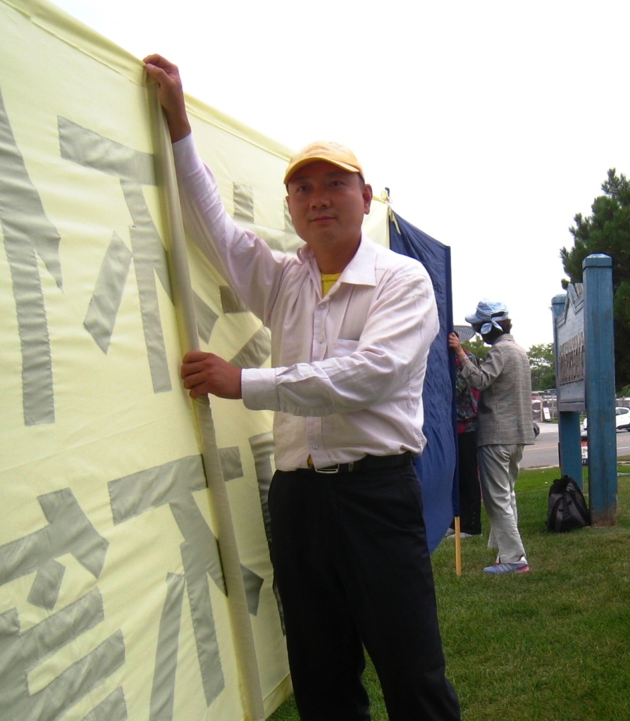 自己修炼法轮功,身心受益,再加上知道了发生在中国的迫害真相后,何先生很快走进了讲真相、反迫害的行列,他在处理好家庭和工作的同时,每个周末都到这里来坚持打横幅和讲真相,八年的坚持,他表示:只为人们能明真相,了解法轮大法的美好和迫害的残酷。
