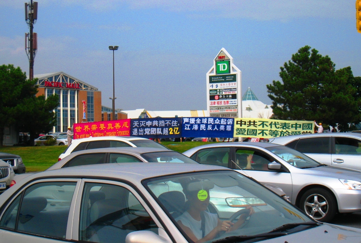 【明慧网二零一五年九月十三日】太古广场(Pacific Mall)是加拿大安大略省的一个亚洲购物中心,也是北美洲最大的华人室内购物商场。它位于多伦多市交通要道士刁士大道(Steeles Ave.)和肯尼迪路(Kennedy Rd.)十字交叉路口的东北角。广场内有四百家商铺,经营亚洲流行服装鞋帽和饰品,音像制品、珠宝、及珍珠奶茶等特色饮料的小店,非常象香港的市井店铺。太古广场是加拿大少数的全年三百六十五天开放的购物广场。每逢周末和节假日,商场内总是人潮汹涌。