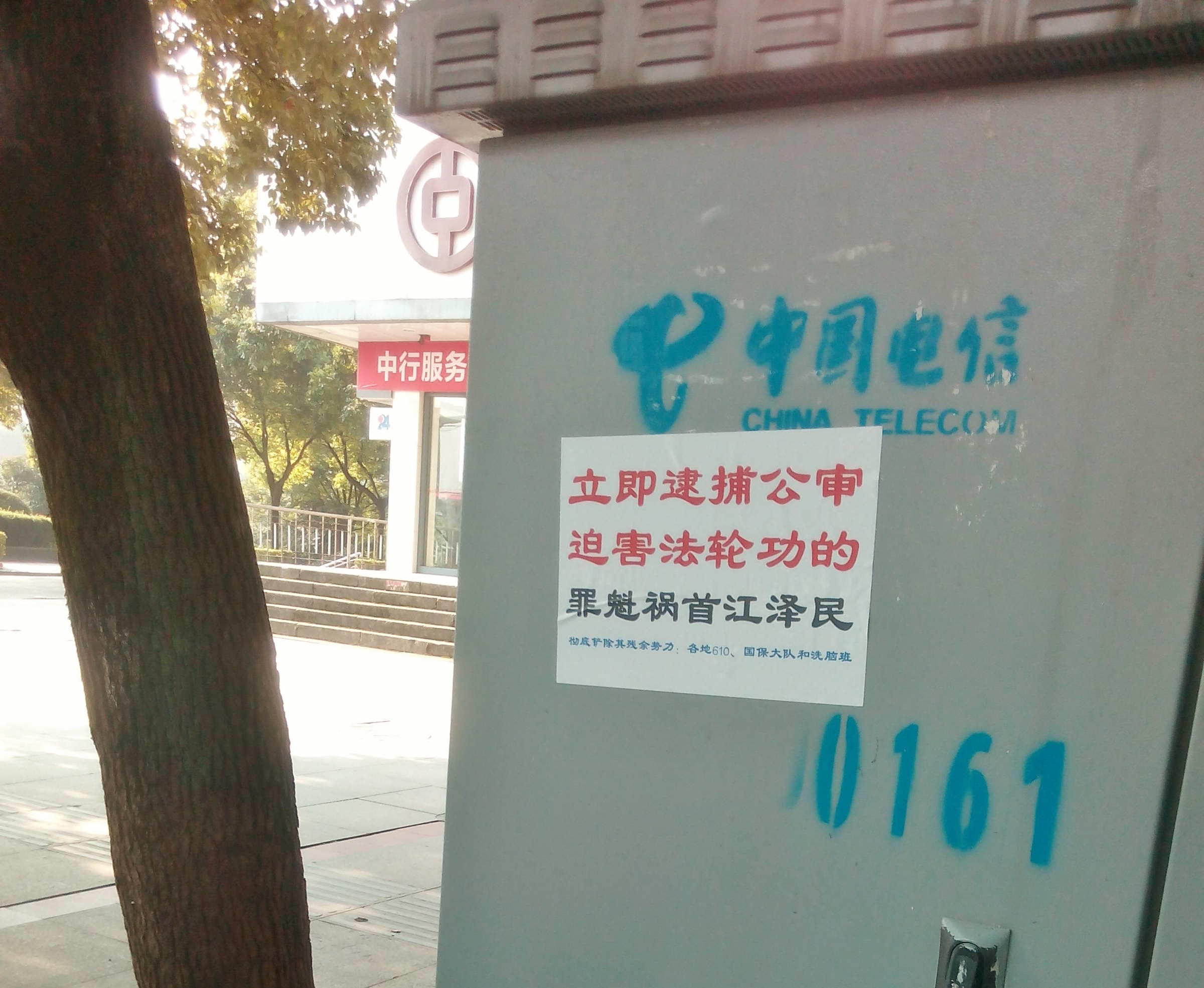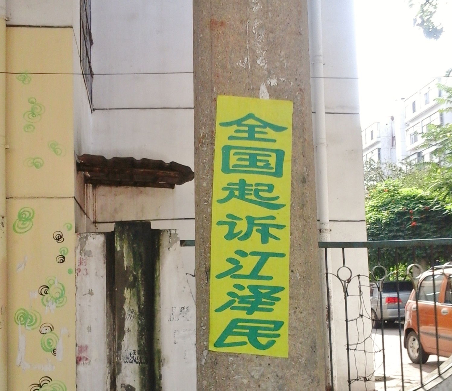 南京市街头人们见到“全球起诉江泽民”、“全球控告江泽民”等真相标语。以无声的语言告诉迷中的人们,尽管法轮大法蒙冤十六载,修炼人的意志从未动摇。江氏集团的罪恶即将被清算,江泽民即被来自世界各地的人起诉。还法轮大法清白的一天即将来到。