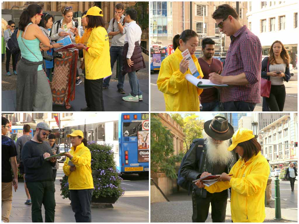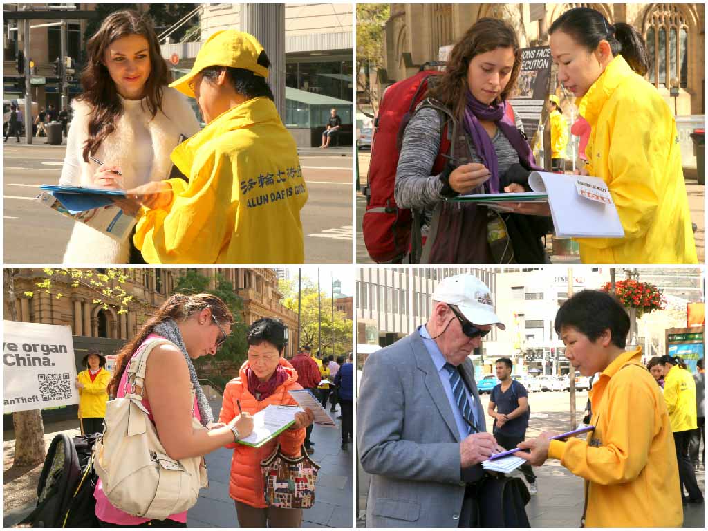 如往常周五下午一样,悉尼法轮功学员以真相长城,法轮功功法展示和征签的形式向过往行人讲真相。年轻女士郝普伍德(Chantal Hopwood)在了解了法轮功真相后表示,这是她第一次知道在中国发生着如此残忍的事情,她说:“这是完全不能接受的,这样的迫害根本就不应该发生。这些人(法轮功学员)的炼功看上去是那么安静,祥和,怎么也无法想象,竟然用如此恐怖的迫害对待他们?”霍普伍德女士在请愿书上签名后表示,活体摘取修炼人的器官是不能容忍的。一个国家政府做出这样可怕的事是完全不应该的。如果可能的话,每个人都应该签名支持。