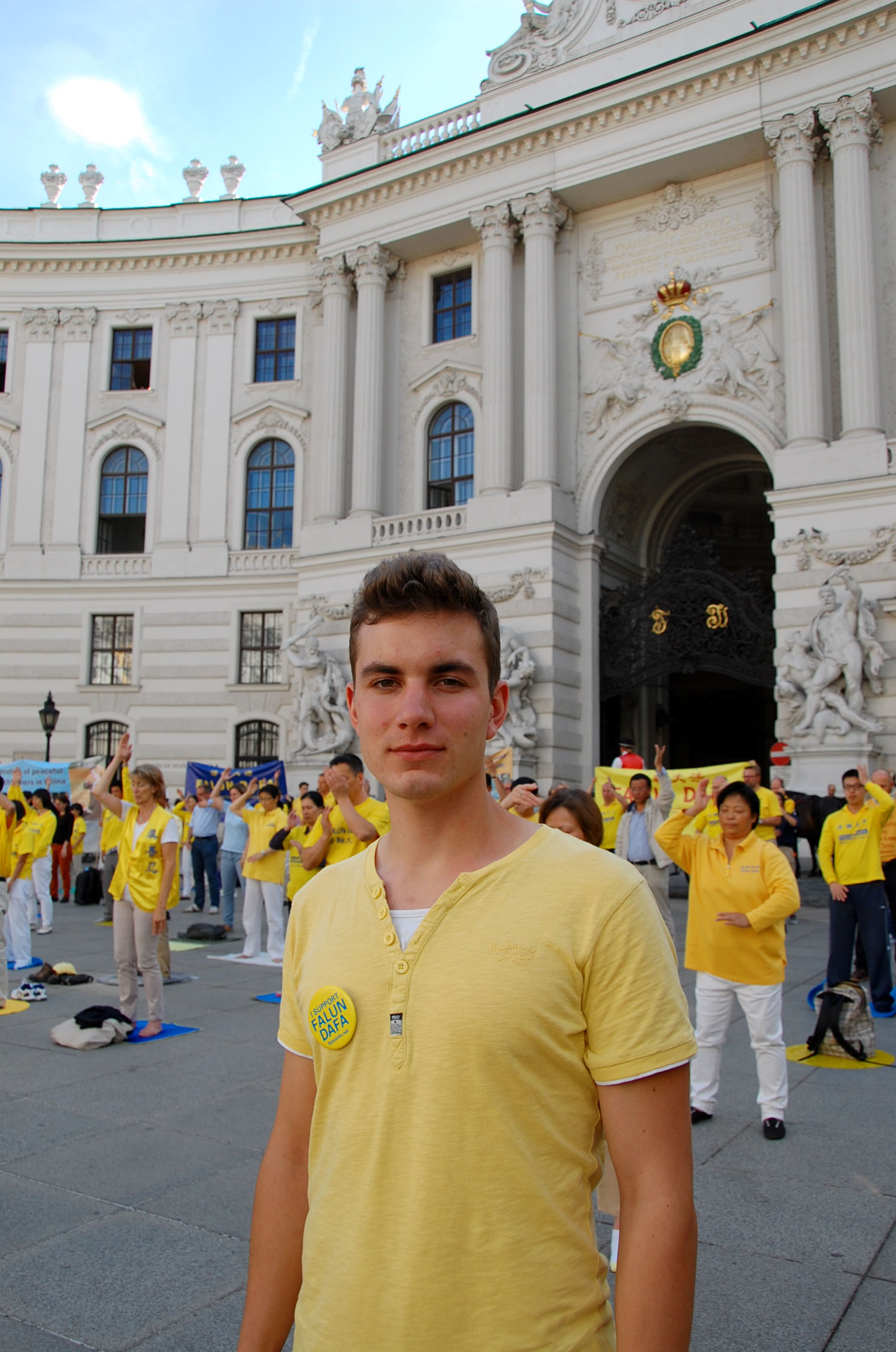 Stephen先生是位来自纽约的工程师,他碰巧路过,看到法轮功学员的活动。他在英文真相展板前驻足,了解真相。他对学员表示,他经常听说关于中共的一些事情,但是没听说过什么好事,都是些中共干的坏事。当他看到法轮功学员被活体摘取器官的真相展板,他觉得简直是太可怕了。当他听学员介绍法轮功在纽约也有炼功点时,他决定回美国后继续关注法轮功,并拿走法轮功传单,表示很感兴趣。他并表示要来看法轮功学员在次日举行的维也纳大游行活动。