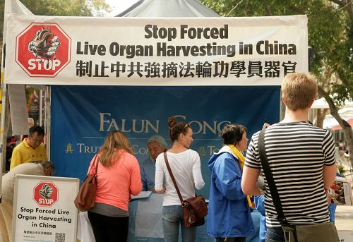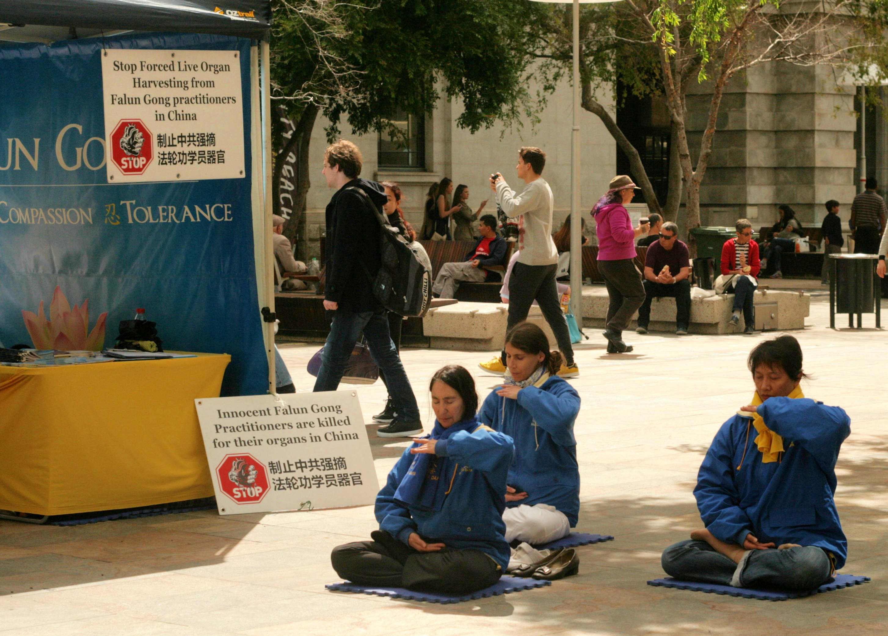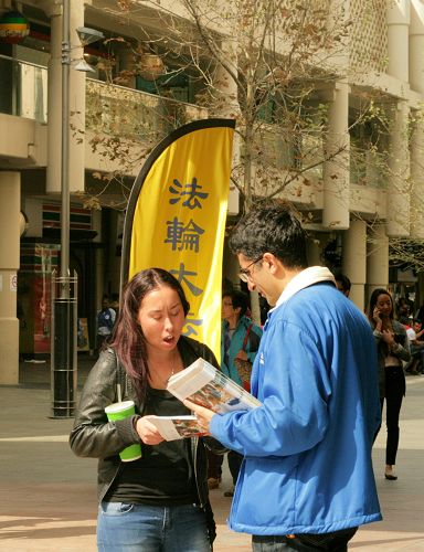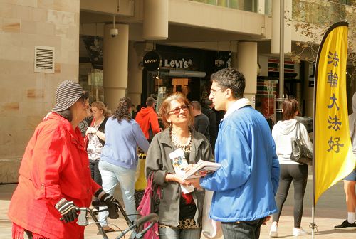 ![]() 图1:部分西澳法轮功学员在珀斯市中心传播法轮功的真相,同时征集签名制止中共活摘器官恶行。图中,部分法轮功学员正在演示功法。 |