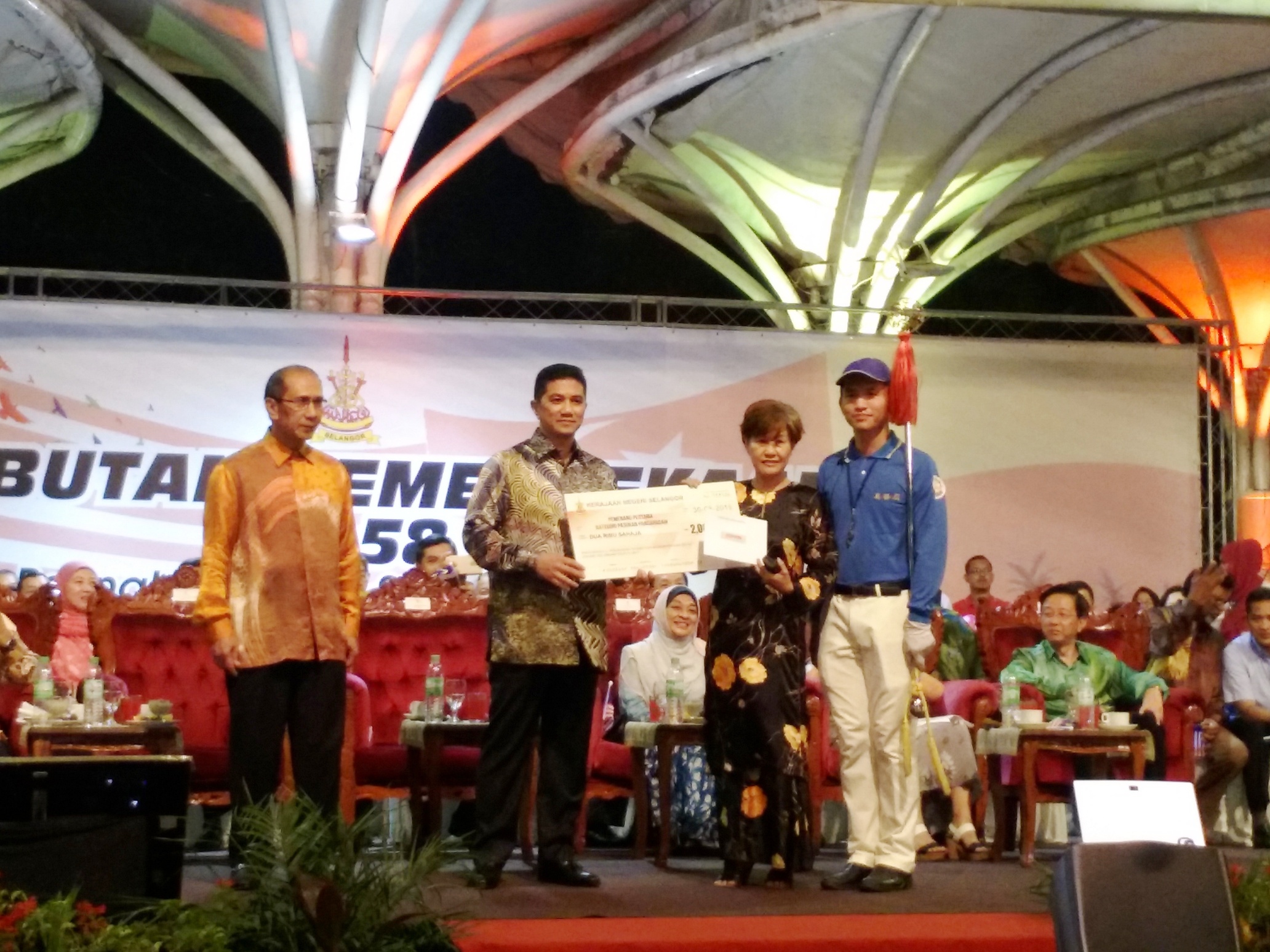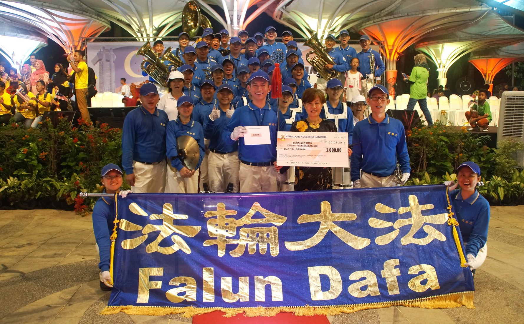 ![]() 雪州大臣颁发“行进乐队组”冠军奖给天国乐团。 |